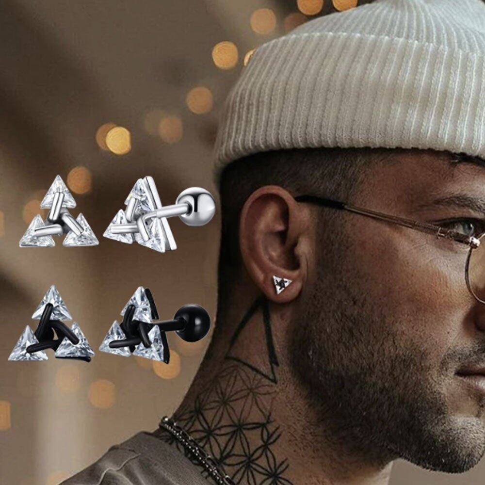 ピアス 三角 ジルコニア シルバーorブラック 両耳用 アクセサリー ジュエリーサイズ 棒部分長さ約1.3cmトップ部分直径約8mm×幅約2mm重量約1g素材 合金、ジルコニア内容品両耳セット*キャッチは外れにくい回して外すネジタイプです種類シルバーorブラック三角形のジルコニアストーンが印象的なファッションピアスです。