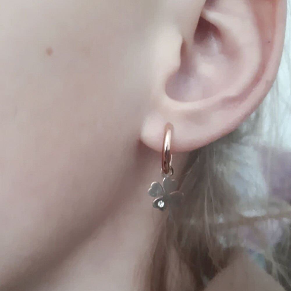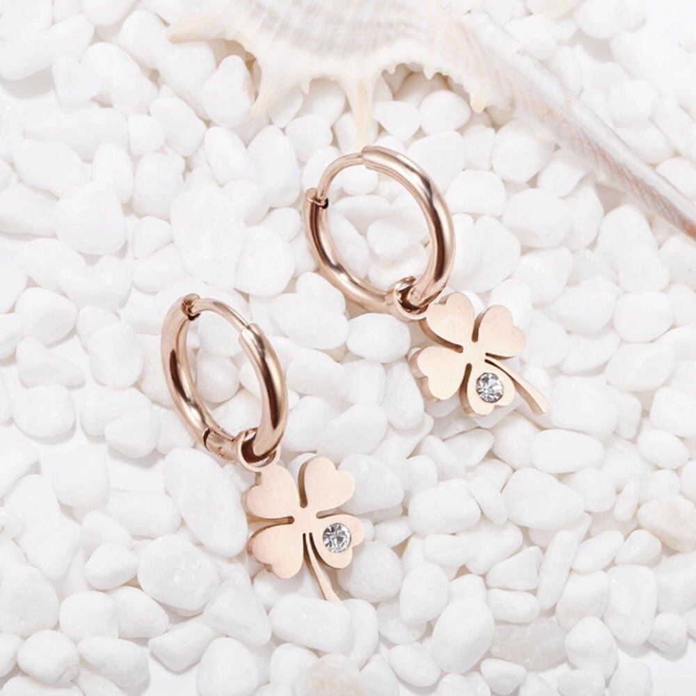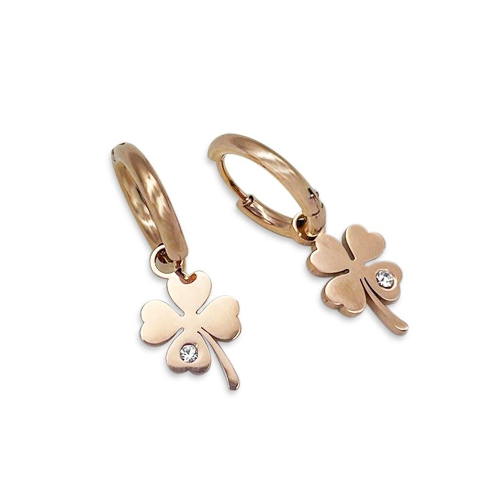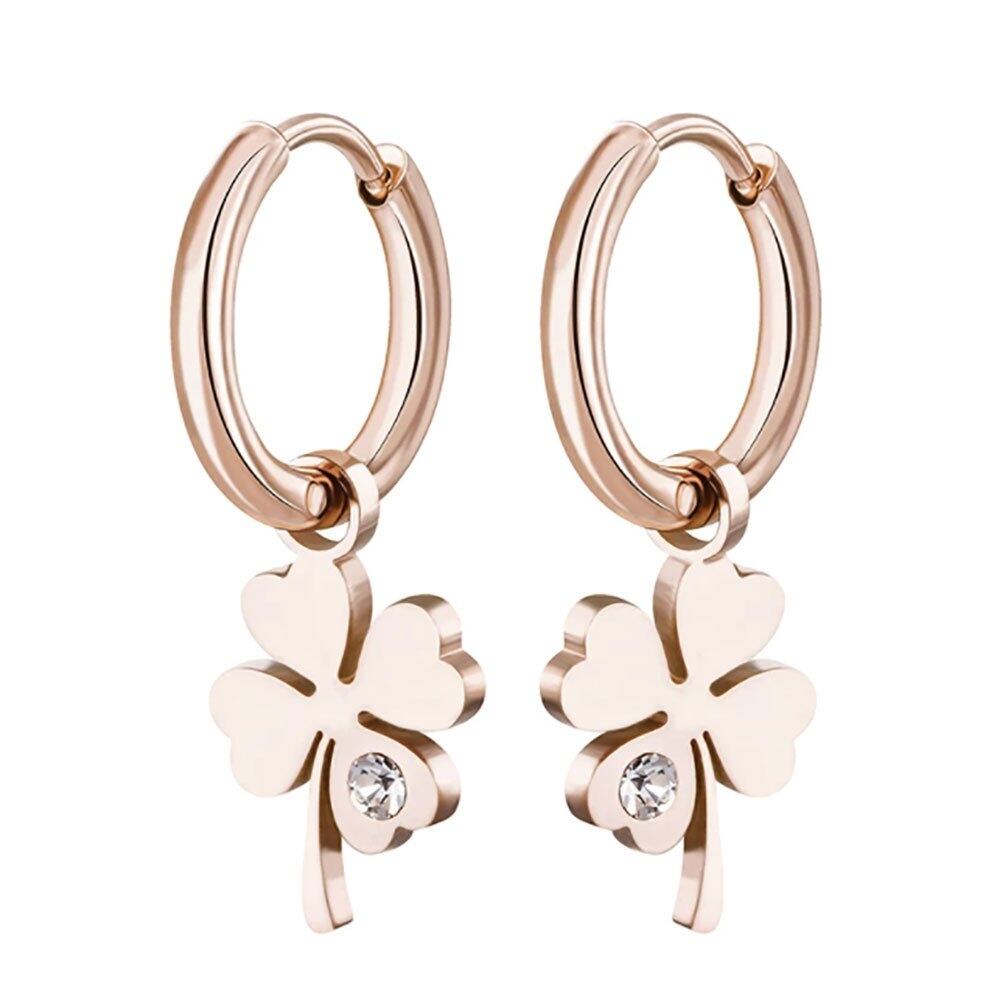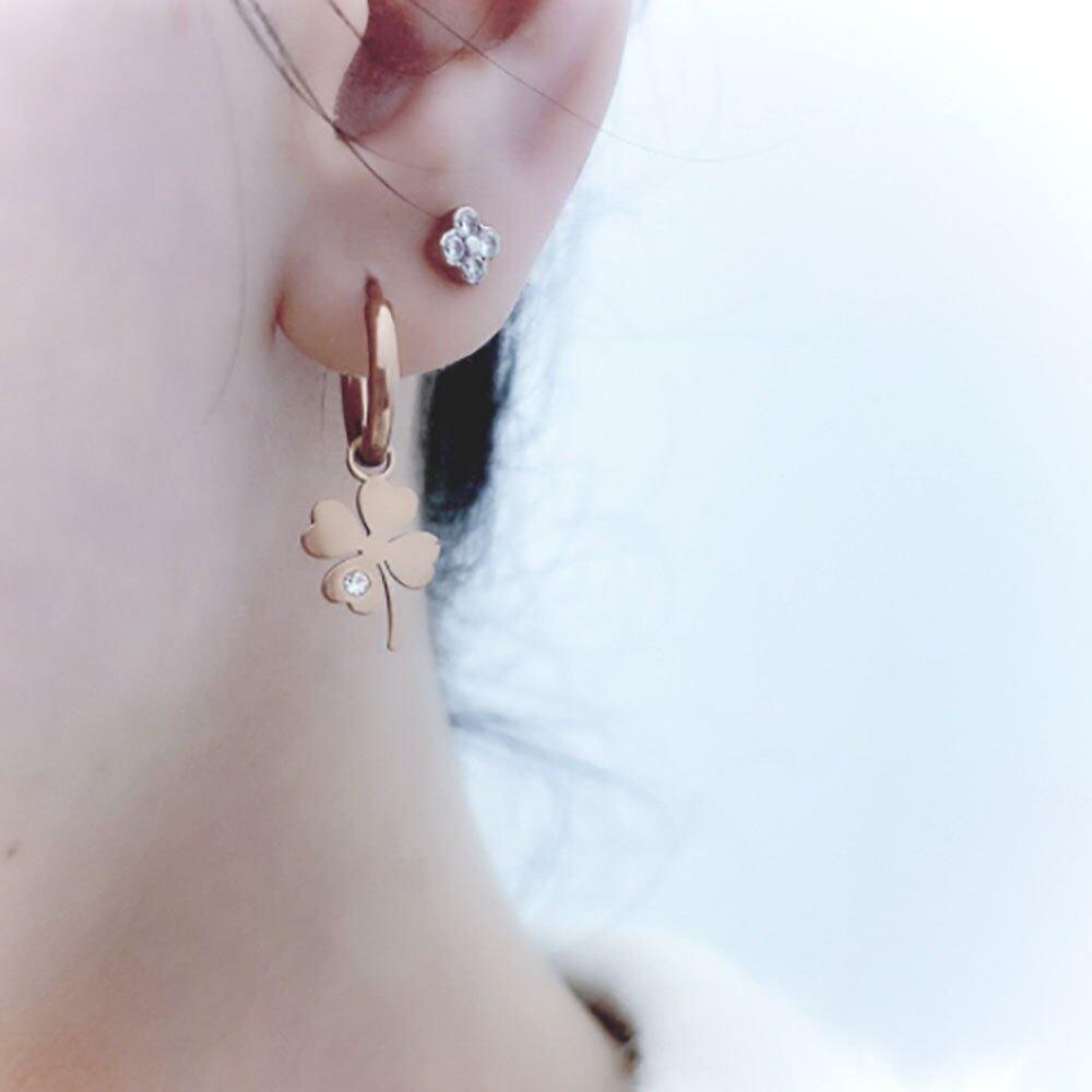ピアス 四つ葉のクローバー 両耳用 ローズゴールド アクセサリー ジルコニアサイズ リング直径約1.3cmトップ部分約1cm×約0.9cm重量約1g素材 合金、ジルコニア内容品両耳セット四つ葉のクローバーが印象的なファッションピアスです。