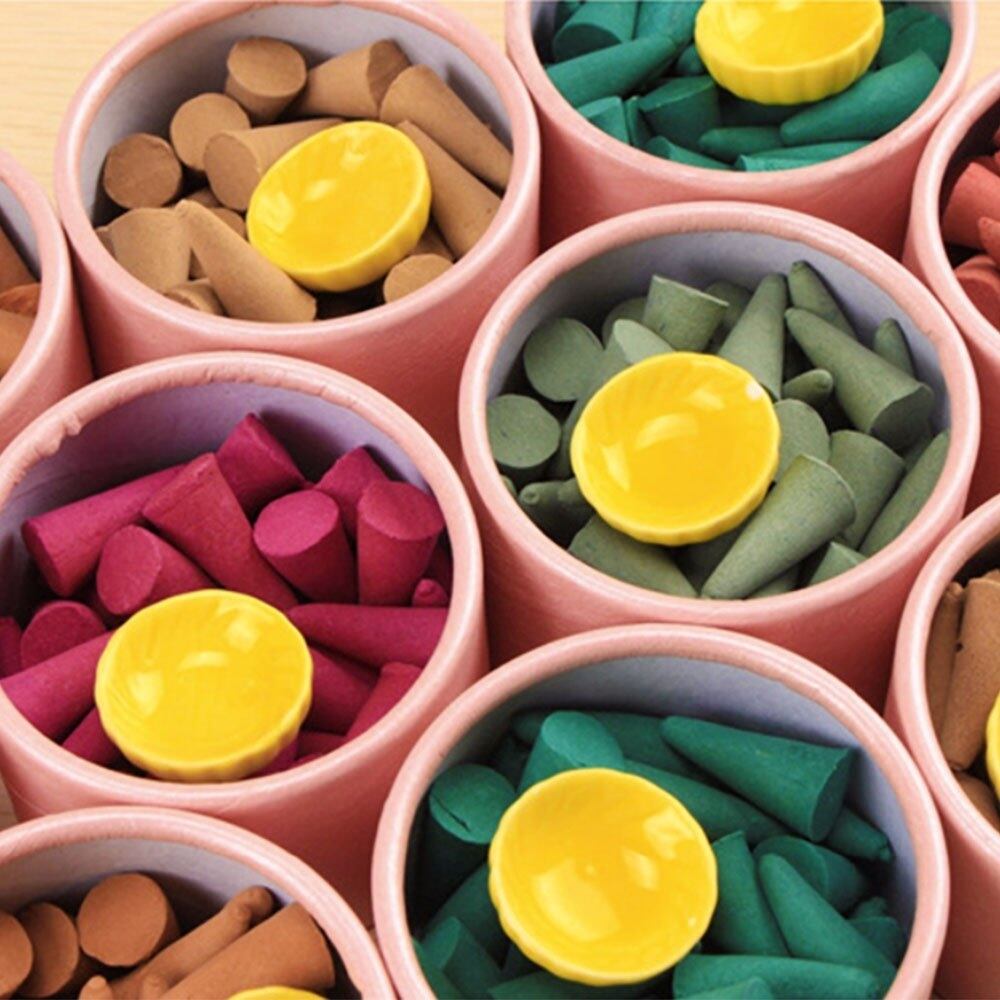 お香 コーン 5種類 ジャスミンorローズorラベンダーorレモンorユリサイズ (コーン1つ)約2.5cm×約1cm素材 植物香油精 エッセンシャルオイルセット内容1種類約40?50個入り(生産時期によって個数が数個変動する場合がございますのでご了承ください)