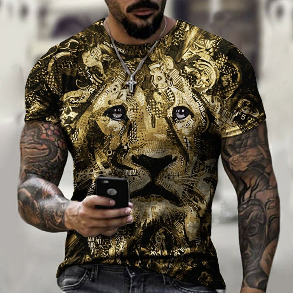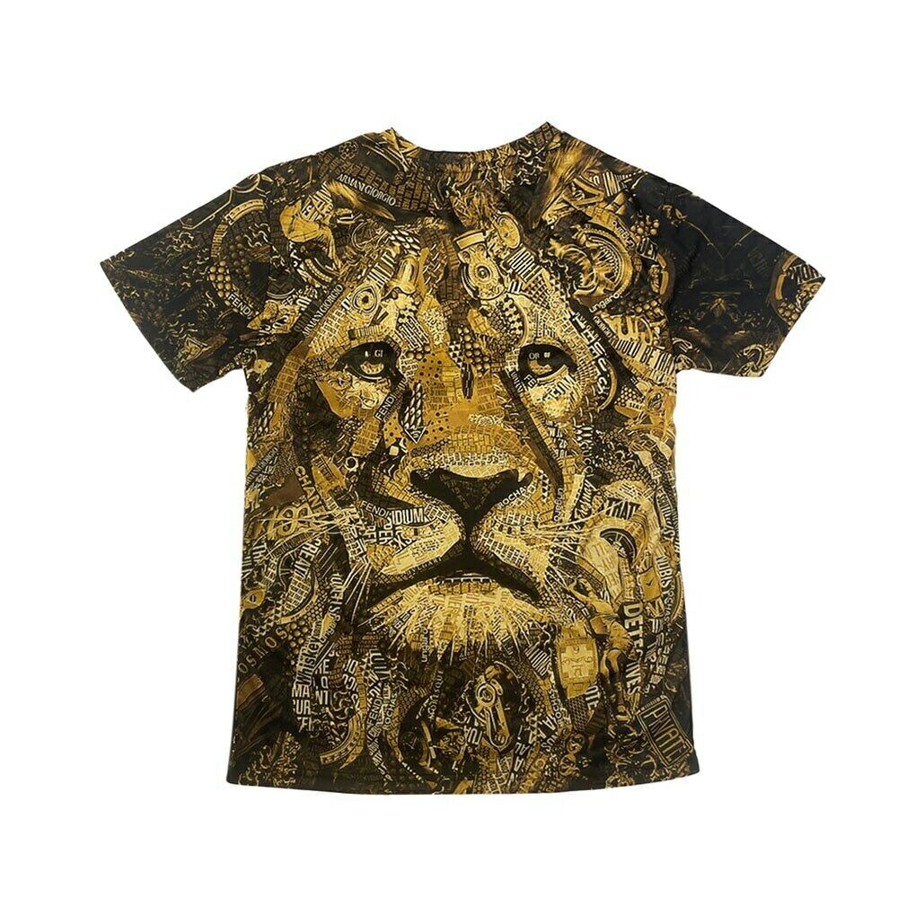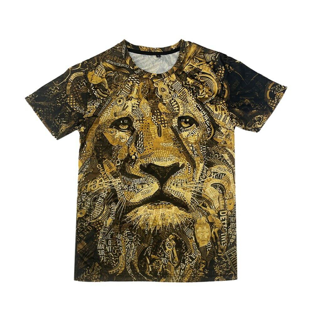 [在庫限り] Tシャツ ライオン 半袖 L 黄色 ゴールド 猛獣 百獣の王 アニ