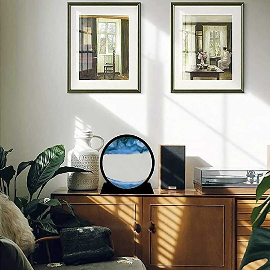 サンドピクチャーとは、砂が不規則に落ちる様子や、砂が作り出す毎回異なる情景をお楽しみいただけるインテリアアイテムです