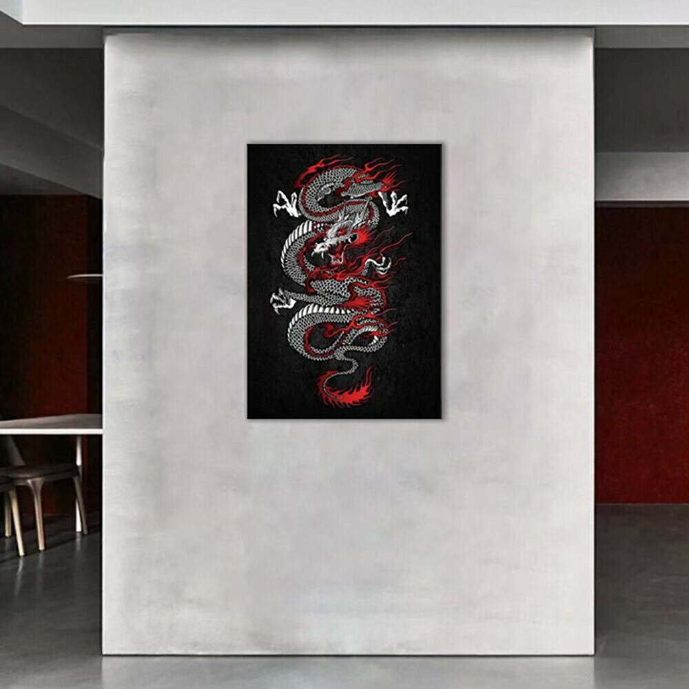 のみとなりますので予めご了承下さいませ黒背景の龍の絵がプリントされた絵画です。