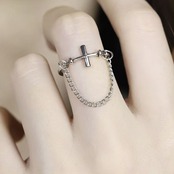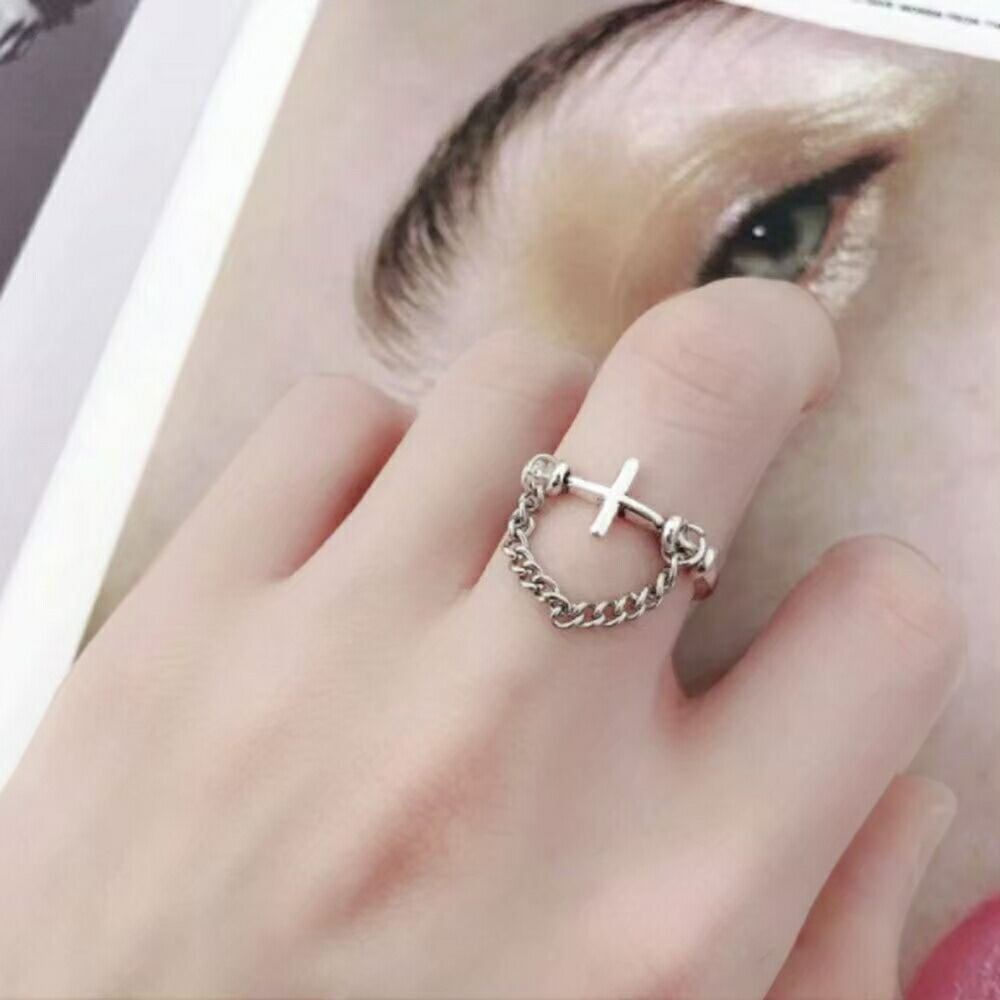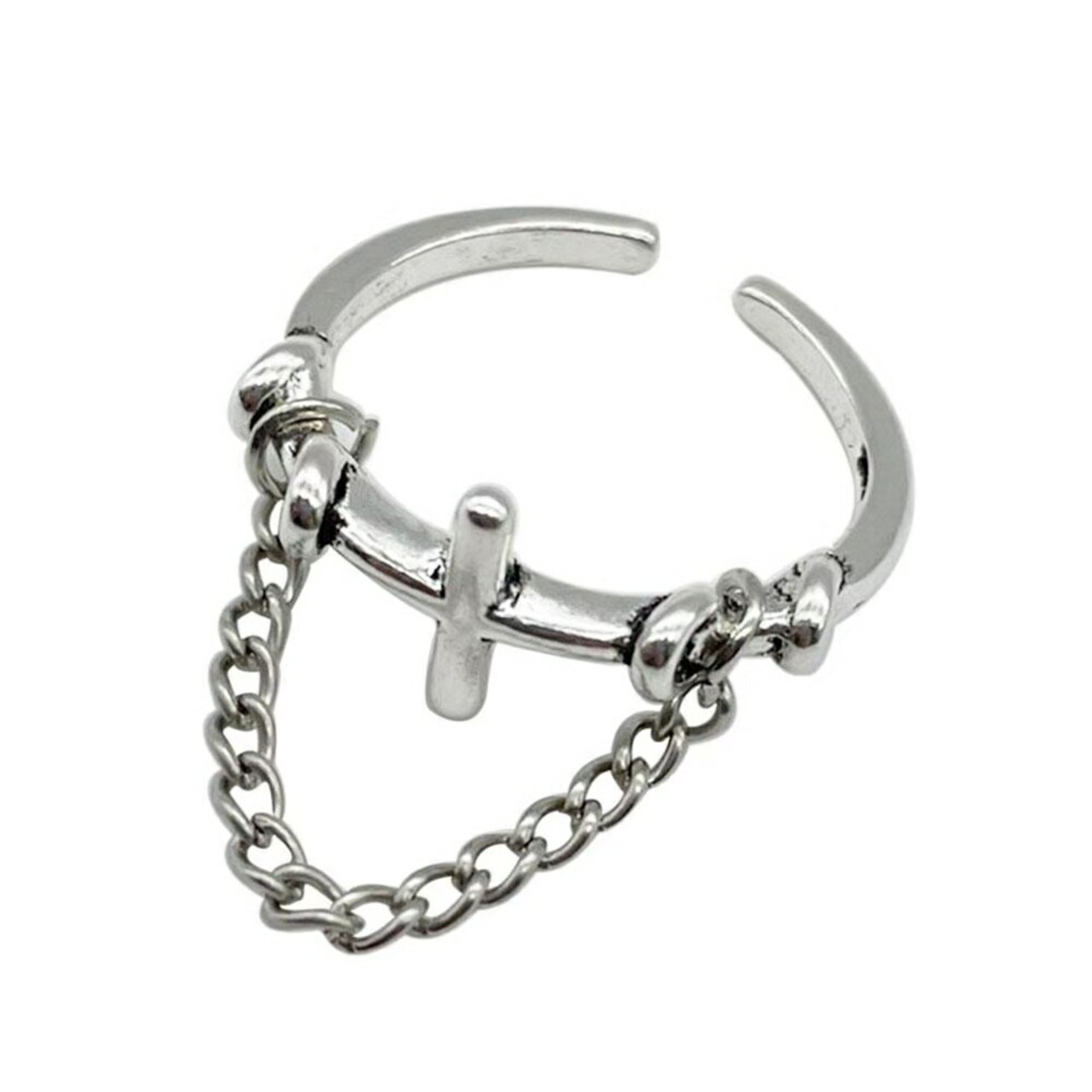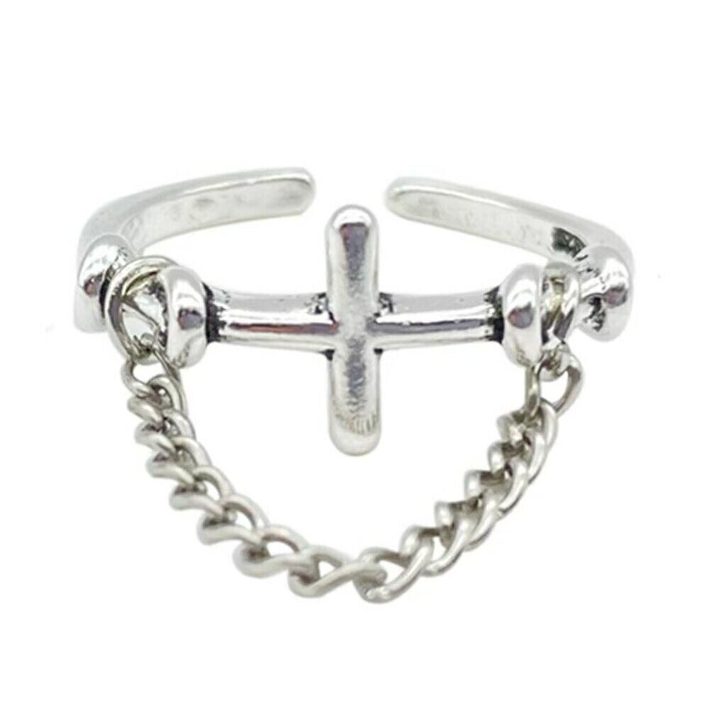 リング クロス チェーン ーVer2ー 十字架 指輪 アクセサリー ヒップホップ ジュエリーサイズ 約10号*Cリングですので前後1号は調節可能です重量 約2g素材 合金十字架にチェーンが付いているのが印象的なファッションリングです。