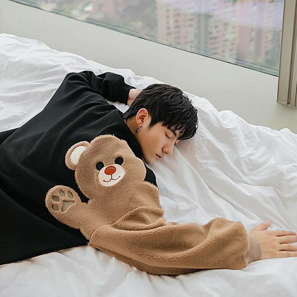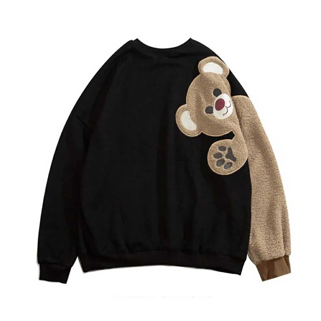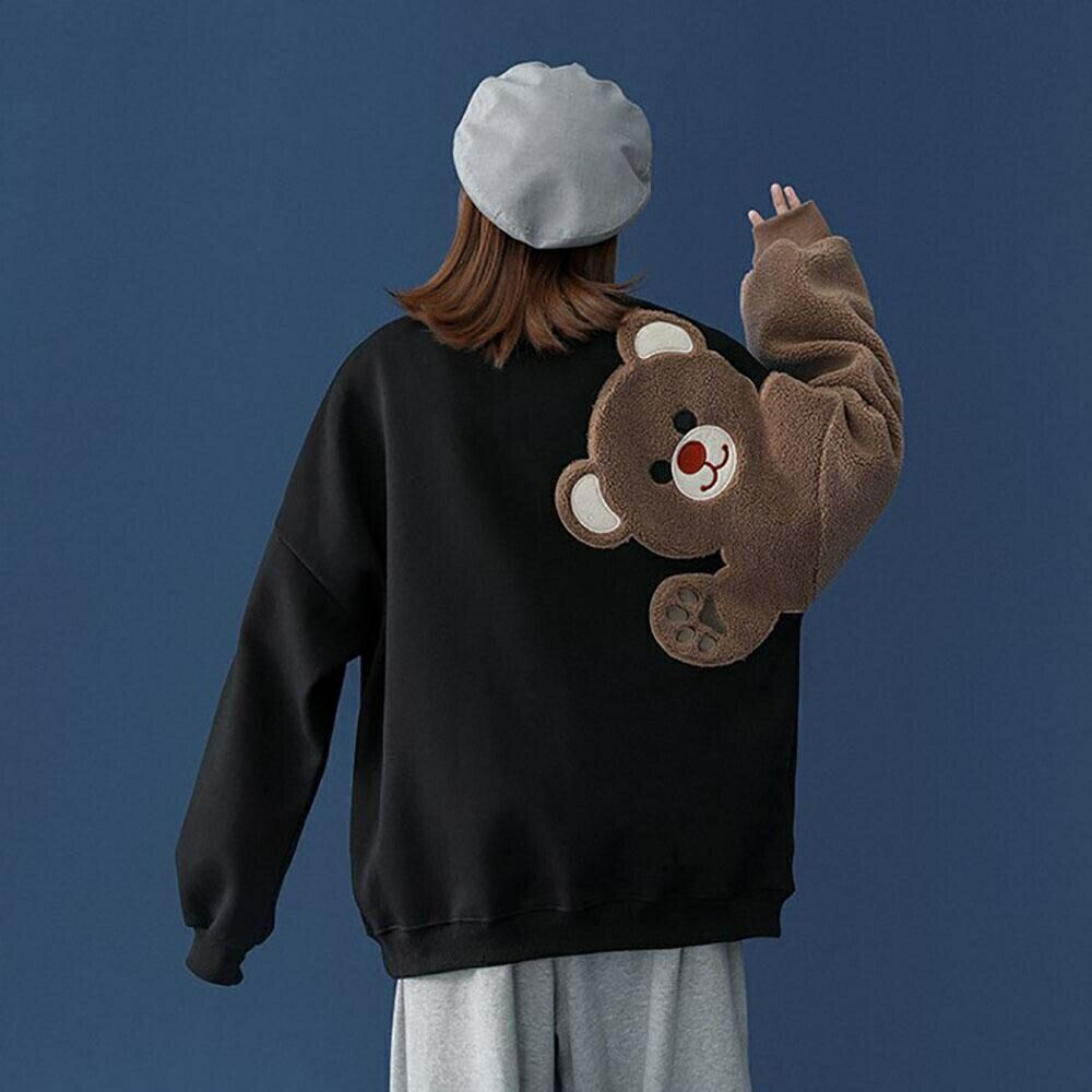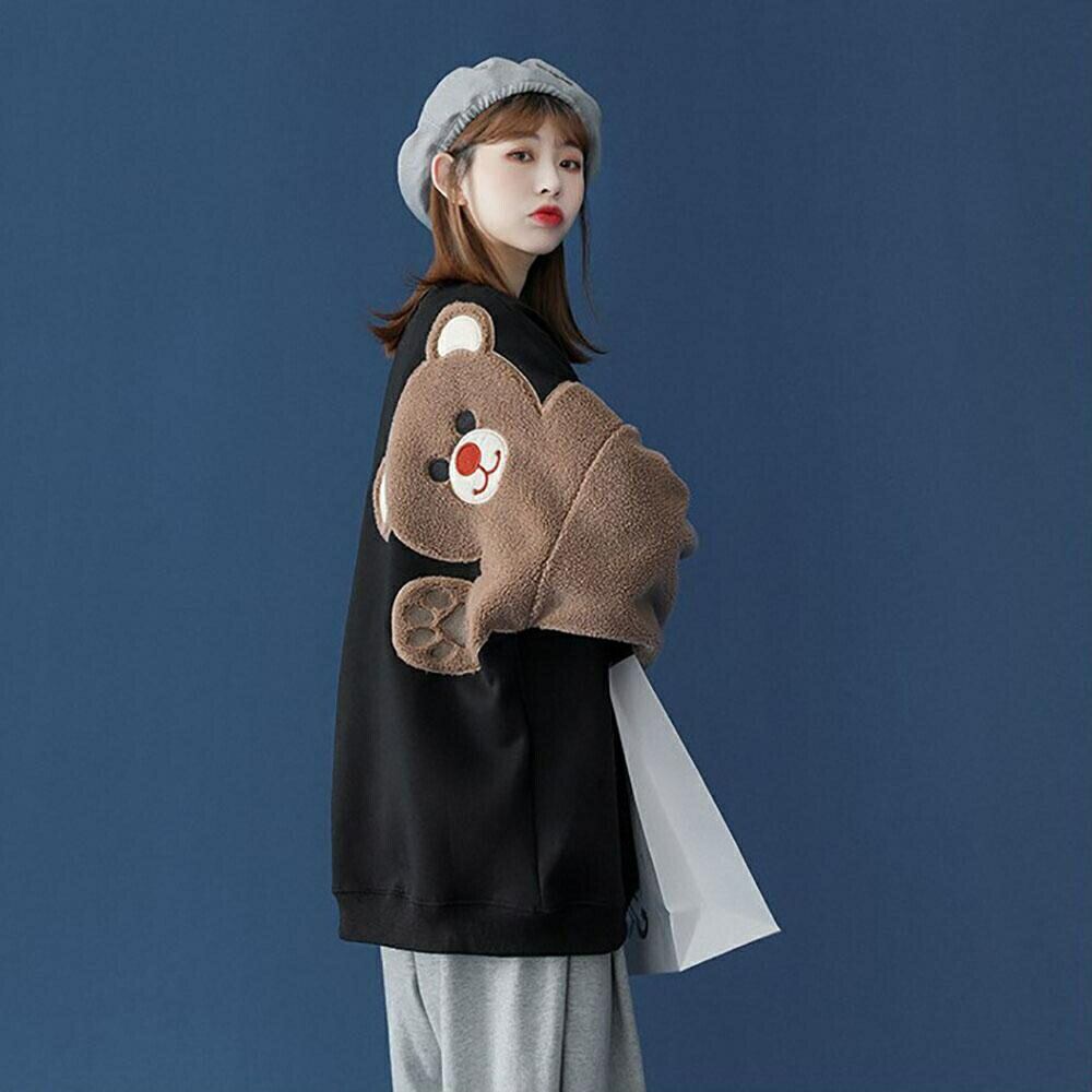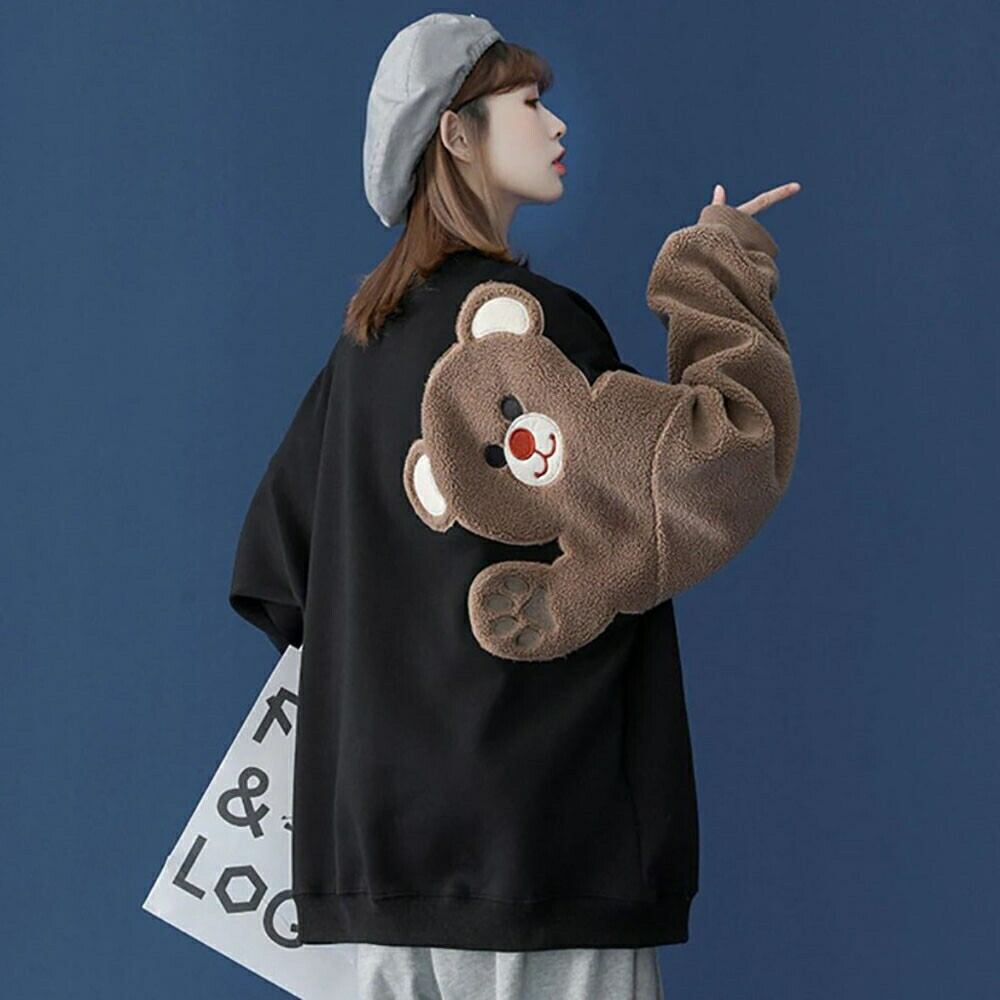 トレーナー 右手がクマ ブラック テディベア 韓国ファッション 黒