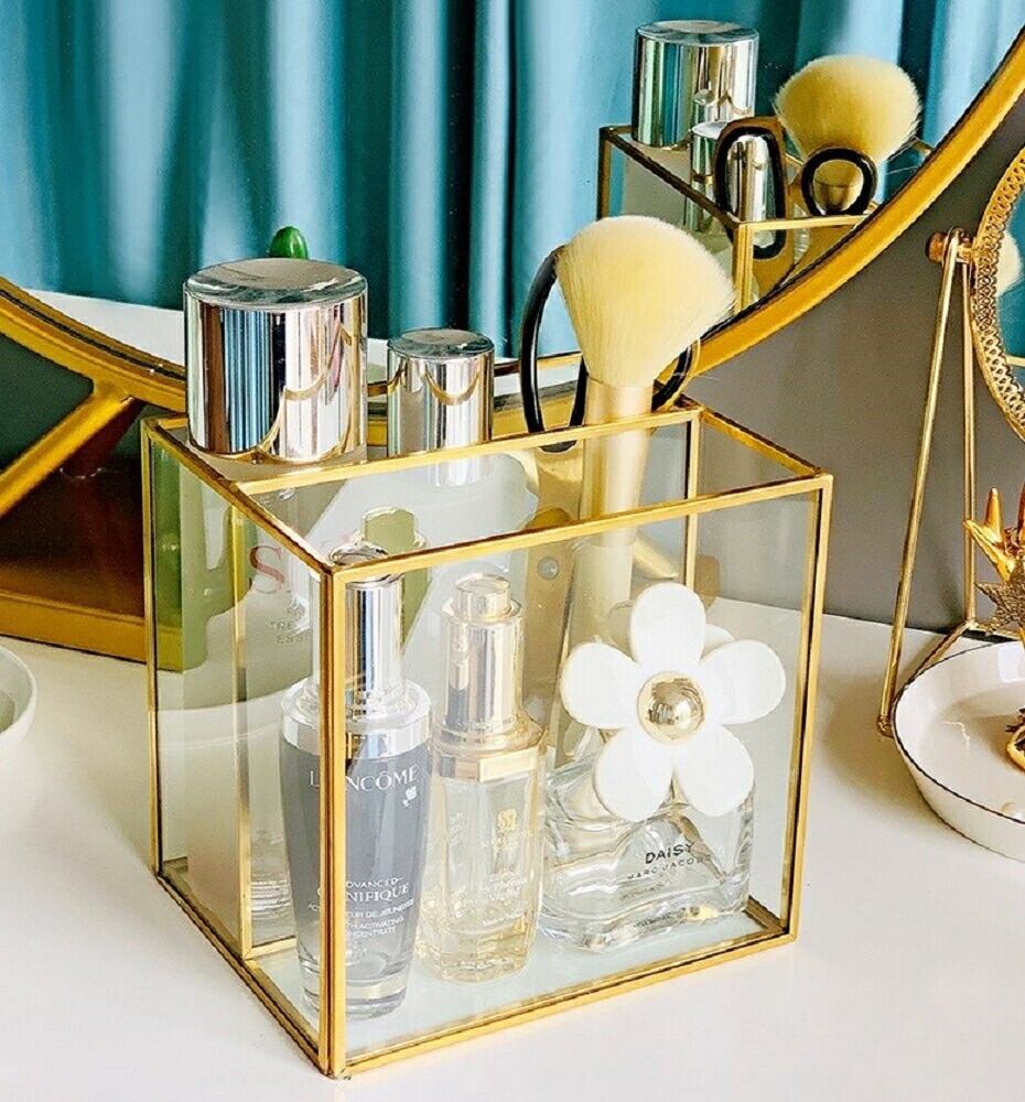 ケース クリア ゴールド フレーム 小物入れ メイク道具 収納サイズ縦約15cm×横約15cm×高さ約16.3cm重量約1103g素材アクリル、真鍮ヨーロッパ風小物入れのボックスです優雅でスタイリッシュなデザインのボックスケースで表面がツルツルでクリアなので、インテリアとして映えますメイク道具、小物、アクセサリーなどを入れるだけで素敵なインテリアに車に置いてもゴージャスな車内を演出ヨーロッパ風のエレガントなデザインが好きな方にオススメのショーケースですスチームパンク系はもちろん、 個性派レトロな部屋にも最適ですカジュアルからロック、パンク系ファッション、アンティーク、ゴシックスタイル、ゴスロリ系にもピッタリですスタイリッシュで実用的なのでメイク道具や小物を保管し、近くに置いて、デスクをすっきりと整理します透明なガラスケースを使用すると、ボックス内の中身をいつでも確認できるため、いつでも小物を入れ変えることができますダイニングルーム、キッチン、ベッドルーム、オフィス、自動車の使用にも最適です斬新なデザインのこちらのショーケースボックスはユニークで、お部屋にぴったりの装飾です使い方は無限大です
