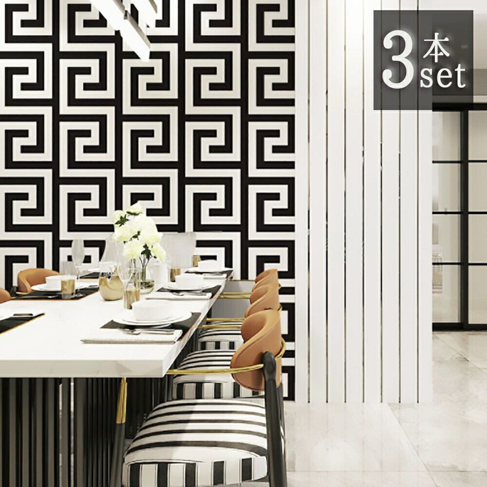 壁紙 3本セット モノクロ ホワイトブラック モノトーン 53cm×950cm DIY のりなしサイズ1ロール 約9.5m×53cm素材 硬めのペーパー注意点:この壁紙はのり付けタイプですので別途でのりや接着剤などを買う必要がありますのでご了承の上ご購入くださいシールタイプではありません
