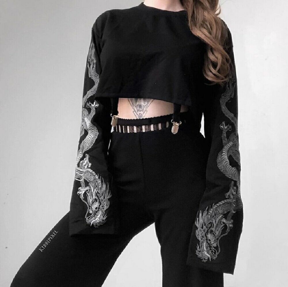 [在庫限り]トップス ダンス衣装 へそ出し ドラゴン ショートトップス 韓国フ