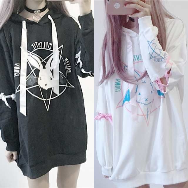 EVIL CUTIE キュートなうさぎのデビル 悪魔ビッグシルエット ロリータ ゴスロリウサギ 魔方陣 レディース パーカー 長袖 病みかわ 韓国 オルチャン 韓流 です。