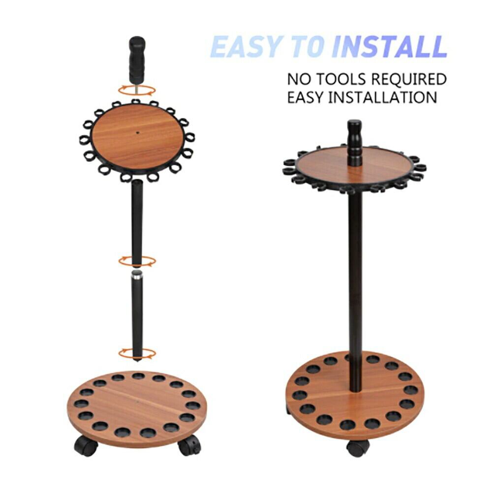 木製のロッドスタンドを長く愛用するためにも置き場所を選んで設置するようにしてください円形に15本のロッドを立て掛けられる木製の釣竿スタンドです。