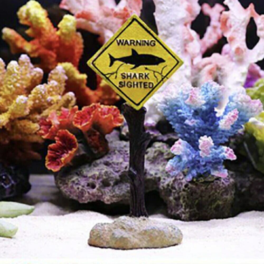 細部まで巧妙に再現されているサメ注意の看板のアクアリウムフィギュアです。