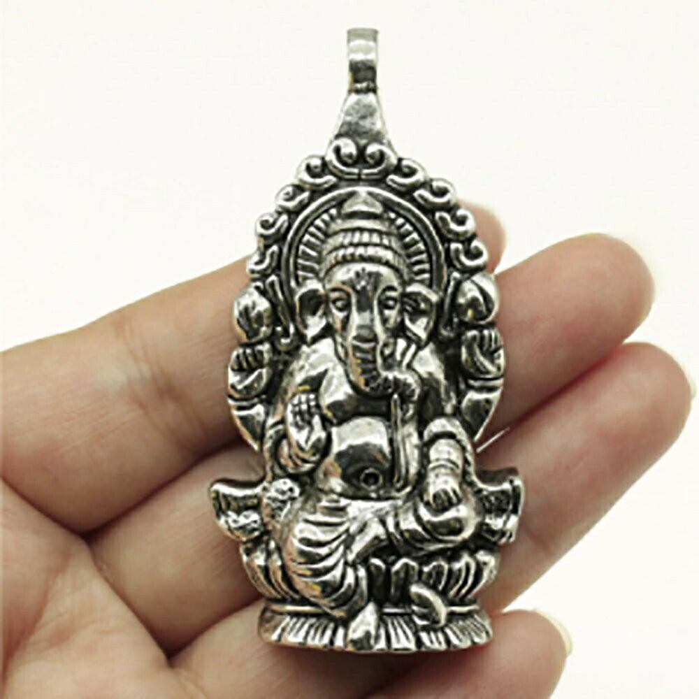 ネックレス 座禅 ガネーシャサイズ ネックレストップ約6cm×約3cm×約1cmチェーン長さ約48cm重量 約18g素材 合金ガネーシャ神は、あらゆる障害を除去して成功に導く神であり、商売繁盛をもたらす幸運な神であり、智慧を司る学問の神であり、文化や芸術を司る技芸の神であり、病苦からの解放をもたらす医術の神であり、あらゆる事象を司る万能の神であるとされていますお経 インド 宗教 お寺 般若心経 厄落とし 魔除け 仏教 置物アイテム、ネックレスとなります!