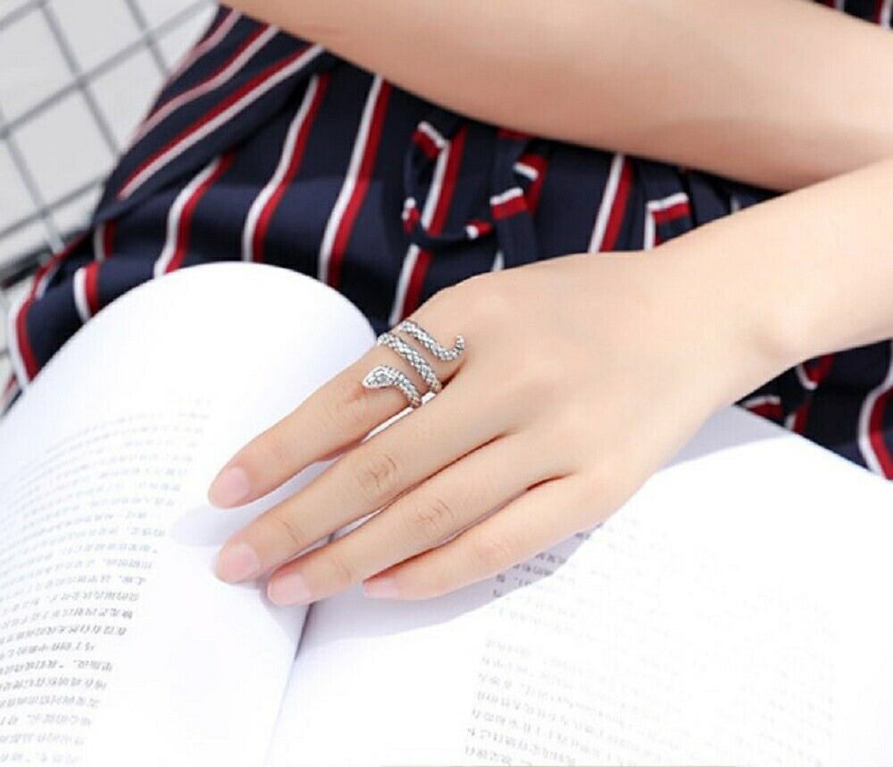 リング スネーク 2巻き サイズフリーサイズ元が約11号(ある程度の調節が可能です)素材合金ジルコニアダイヤを目に埋め込んだ綺麗で優雅な蛇リングですヘビは、脱皮して大きく成長するさまや、長期の飢餓状態にも耐える強い生命力などから、「死と再生」「不老不死」などの象徴とされています他にも、循環性(悪循環 永劫回帰)、永続性(永遠 円運動 死と再生 破壊と創造)、始原性(宇宙の根源)、無限性(不老不死)、完全性(全知全能)など、意味するものは広く、多くの文化、宗教において用いられてきました誕生日や大切な記念日、クリスマスやバレンタインデーなどプレゼントにもおススメのジュエリーですストリート系 コーデ や ダンサー バンド 系 レゲエ 韓国 オルチャン ゆめかわいい レディース トップス モード K-POP KPOP 好きな人にはおすすめです!