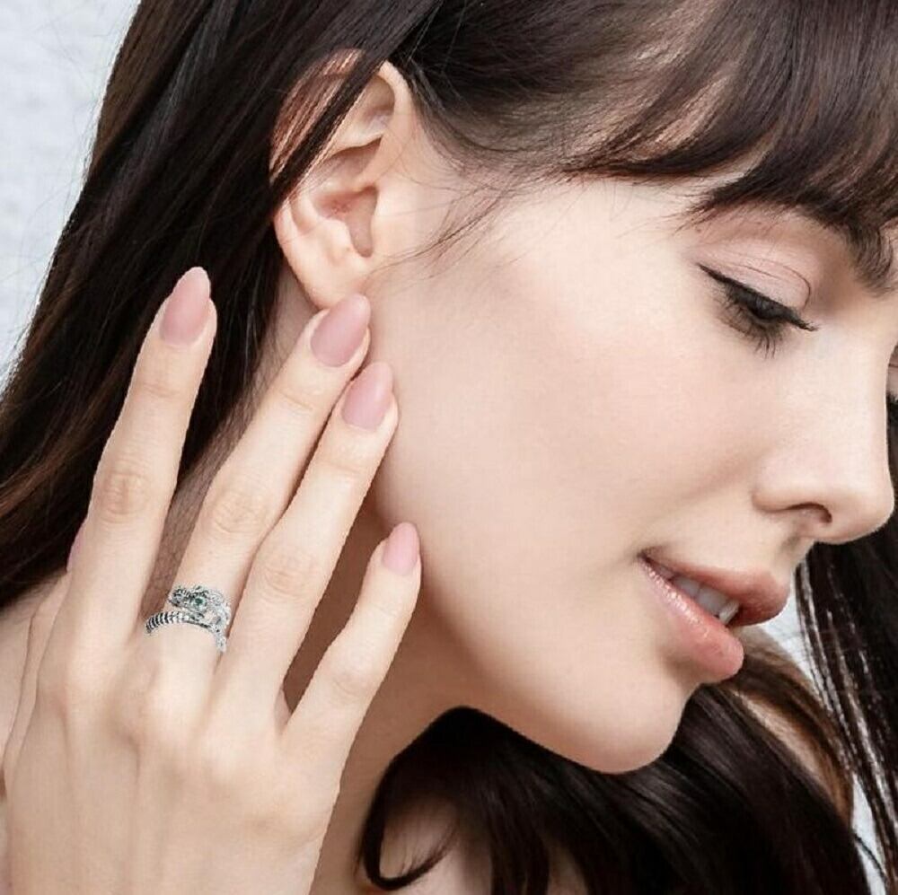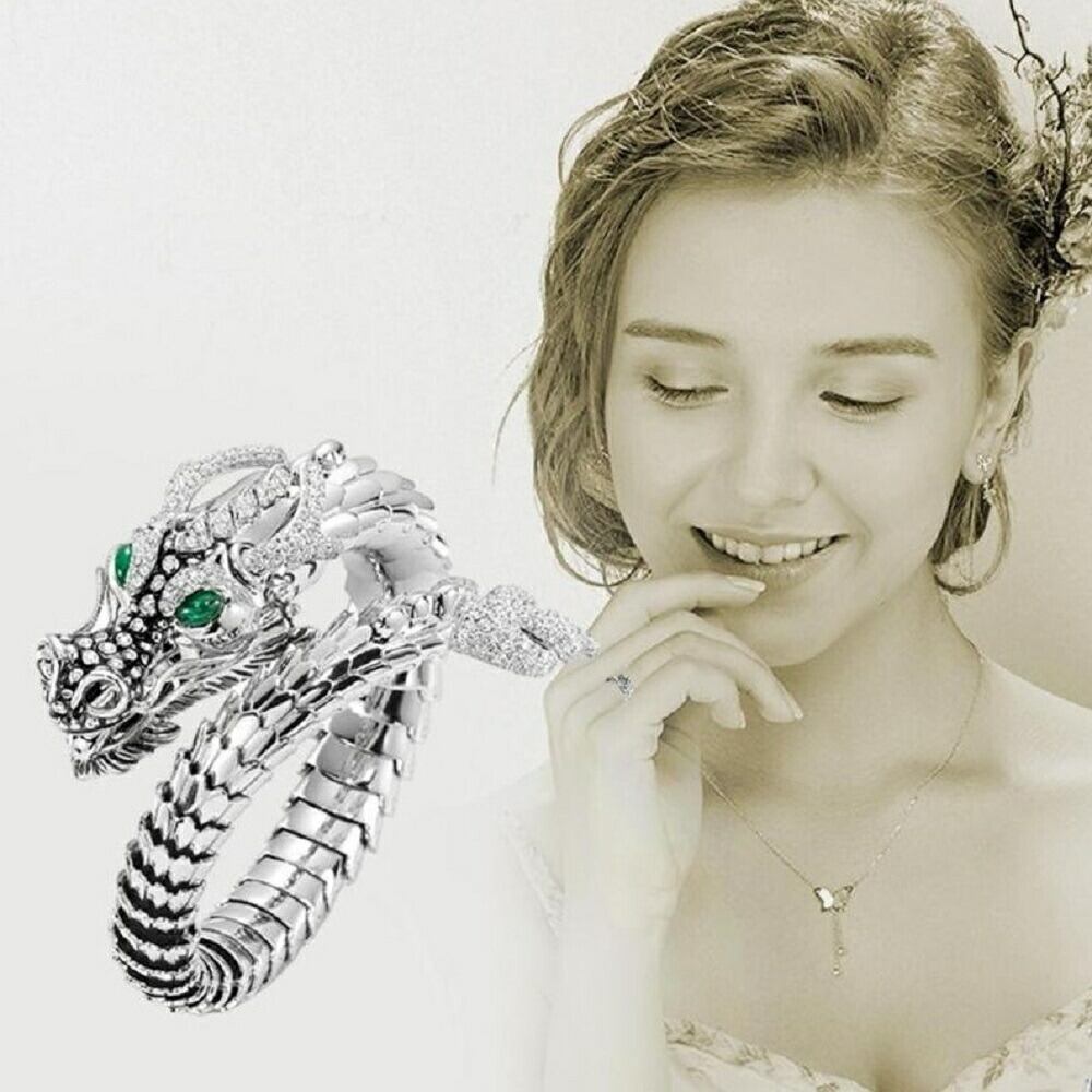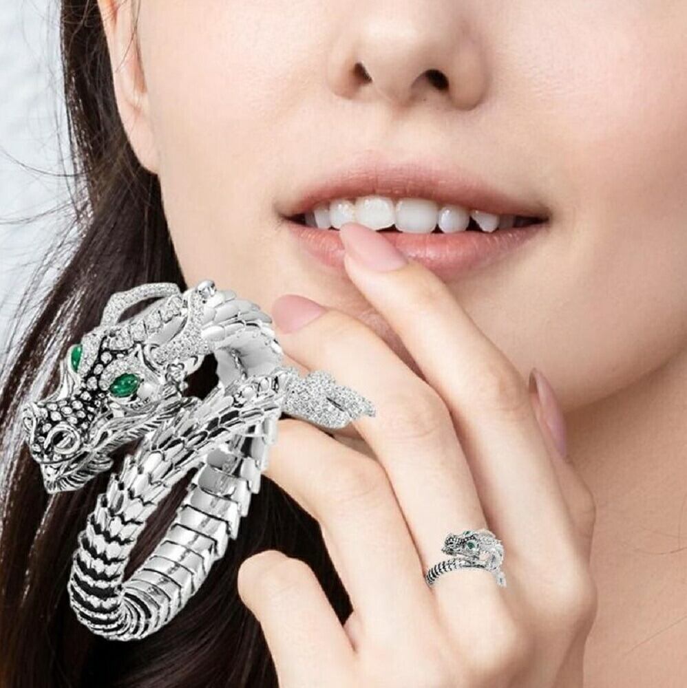 フリーサイズ グリーンアイ 龍 ラインストーン シルバー ドラゴン
