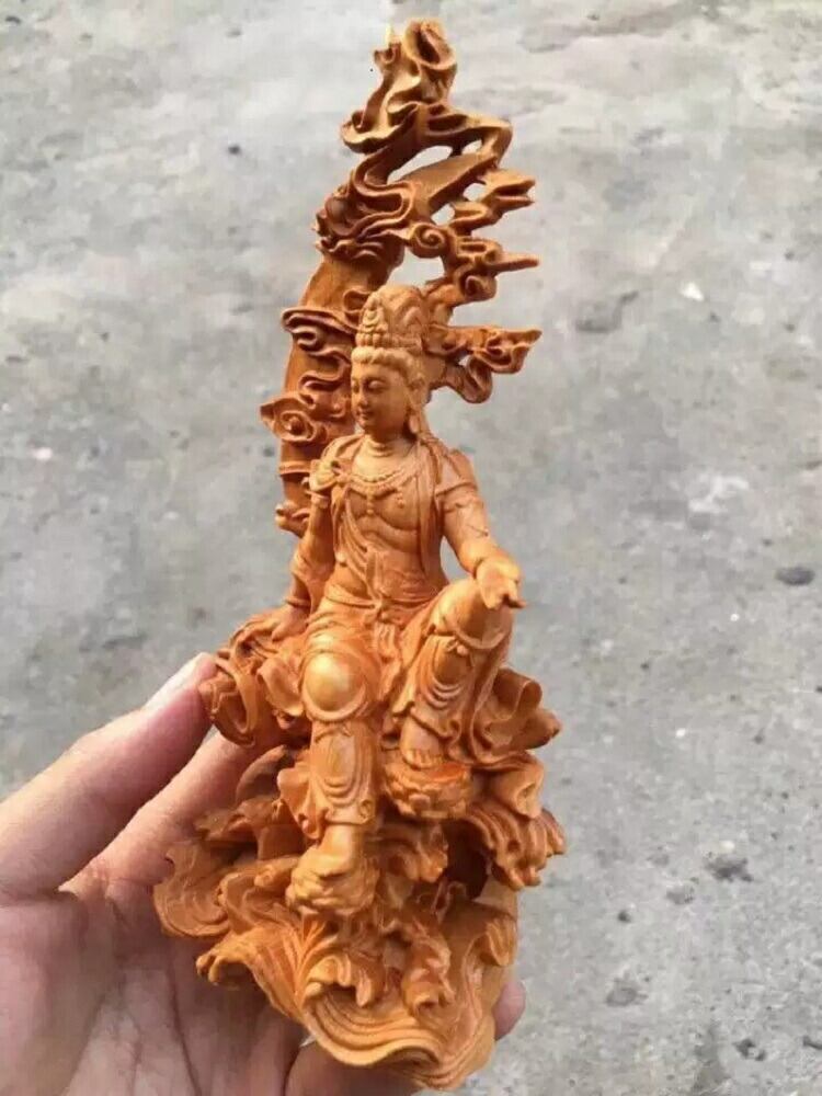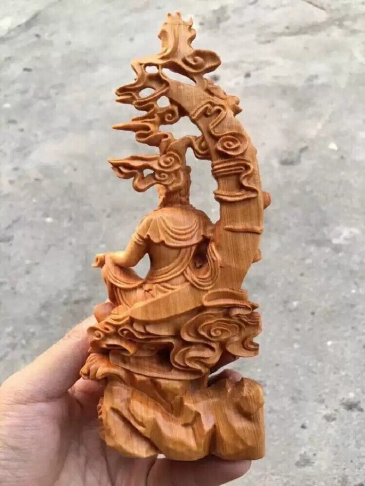 三日月 雲 観音像 観音菩薩 立像 木彫り 仏像 置物 製品材質:ツゲ本体 縦17cm 横7cm 重さ70g専用の化粧箱にお納めしてお届けいたします。