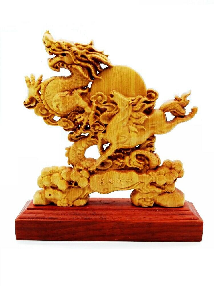 龍馬精神 木彫りドラゴン 置物 風水 立像 高級天然ツゲ 風水グ
