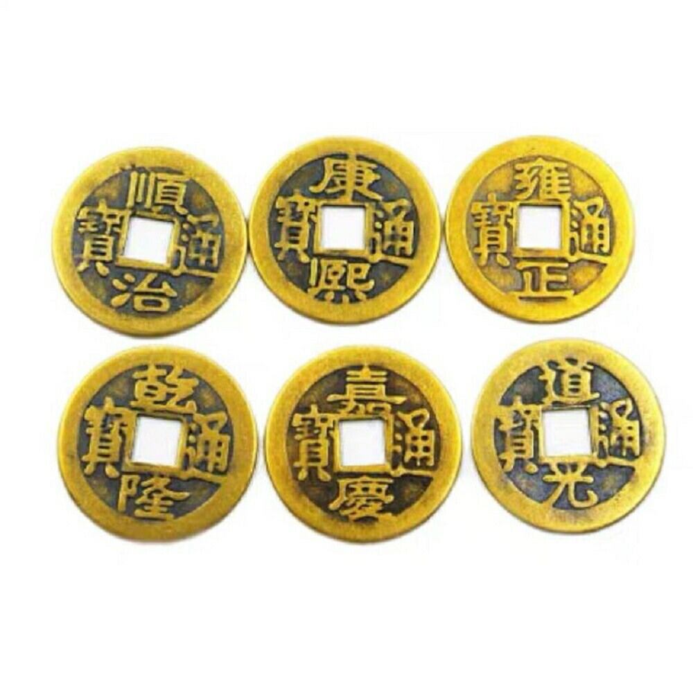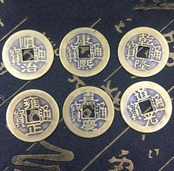 風水でパワーの強い順に並べると材質、形、色の並びとされていますその材質、形、色を満たす風水古銭は、金運、財運祈願の筆頭ともいえる人気商品です財を呼び込むパワーが高いという他、「家庭や仕事場を和気あいあいと仲良くさせる」「運気を増強させる」というパワーも書かれている文字は、いずれも中国歴代の中でも特に繁栄した年号で、書かれている文字は、いずれも風水の本場、中国清代に君臨した11人の皇帝の中でも特に力が強く、絶大な権力を誇り、財を成した5人の皇帝に加えて、人望が厚く偉大な権力を誇った道光皇帝を加えた名称で、それぞれ順治通宝康熙通宝雍正通宝乾隆通宝嘉慶通宝道光通宝となります。