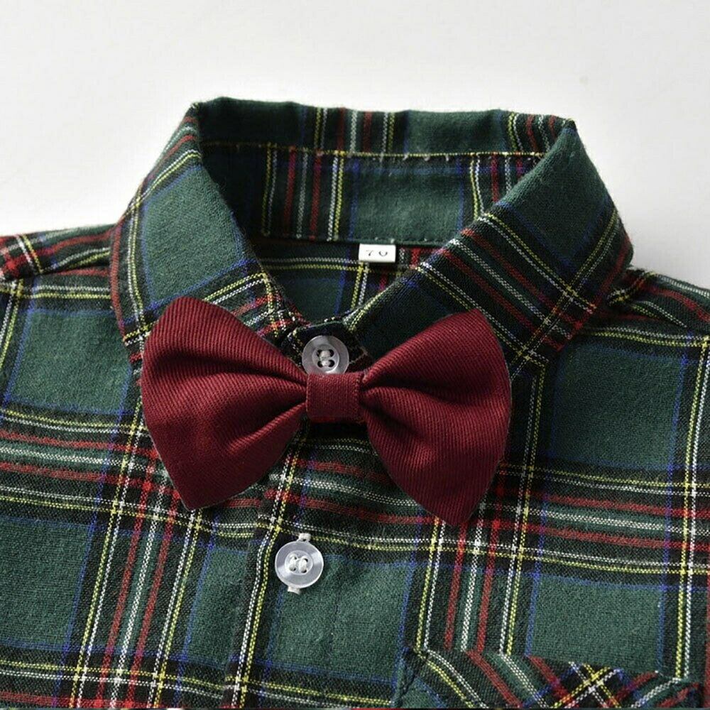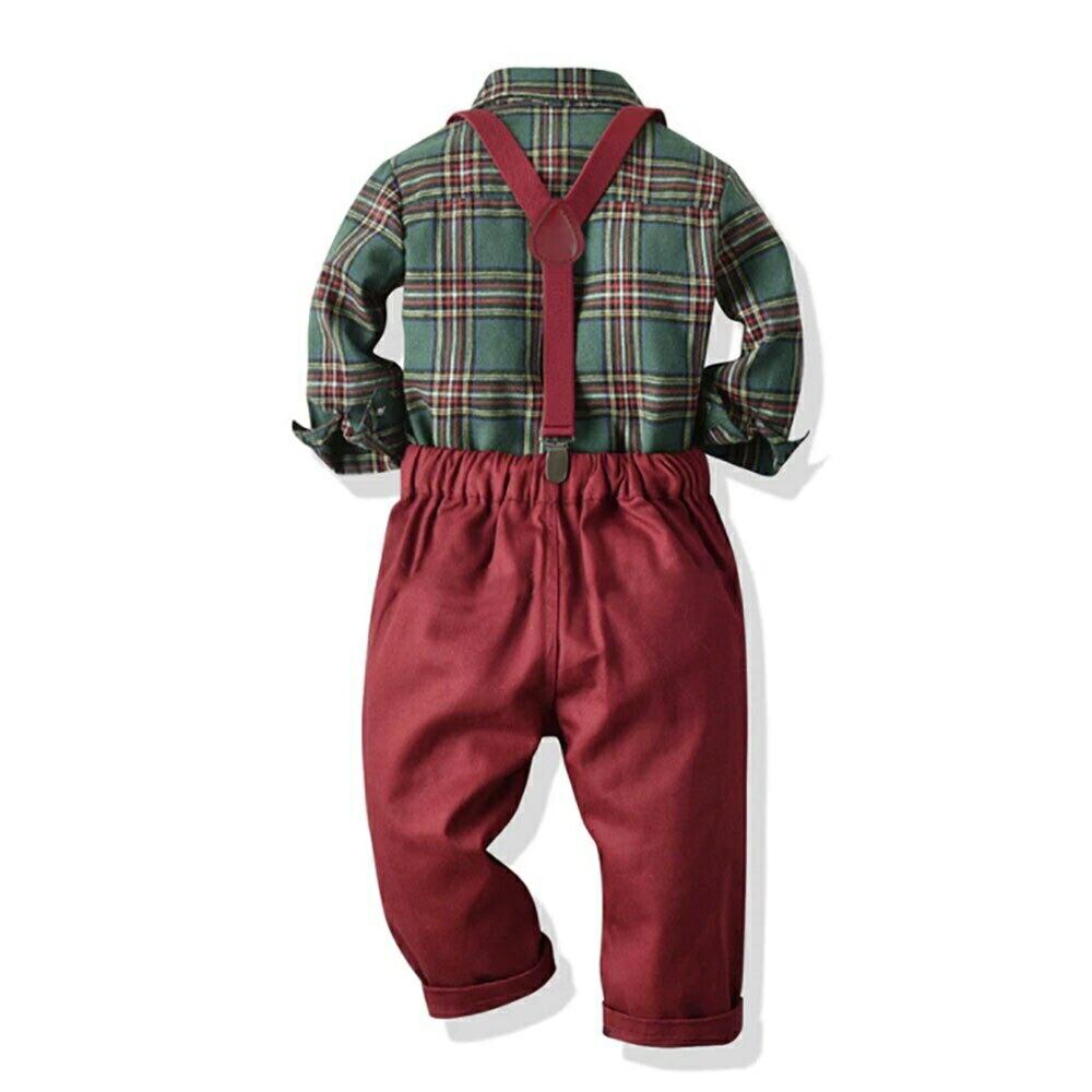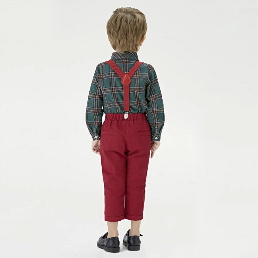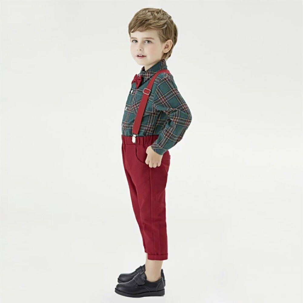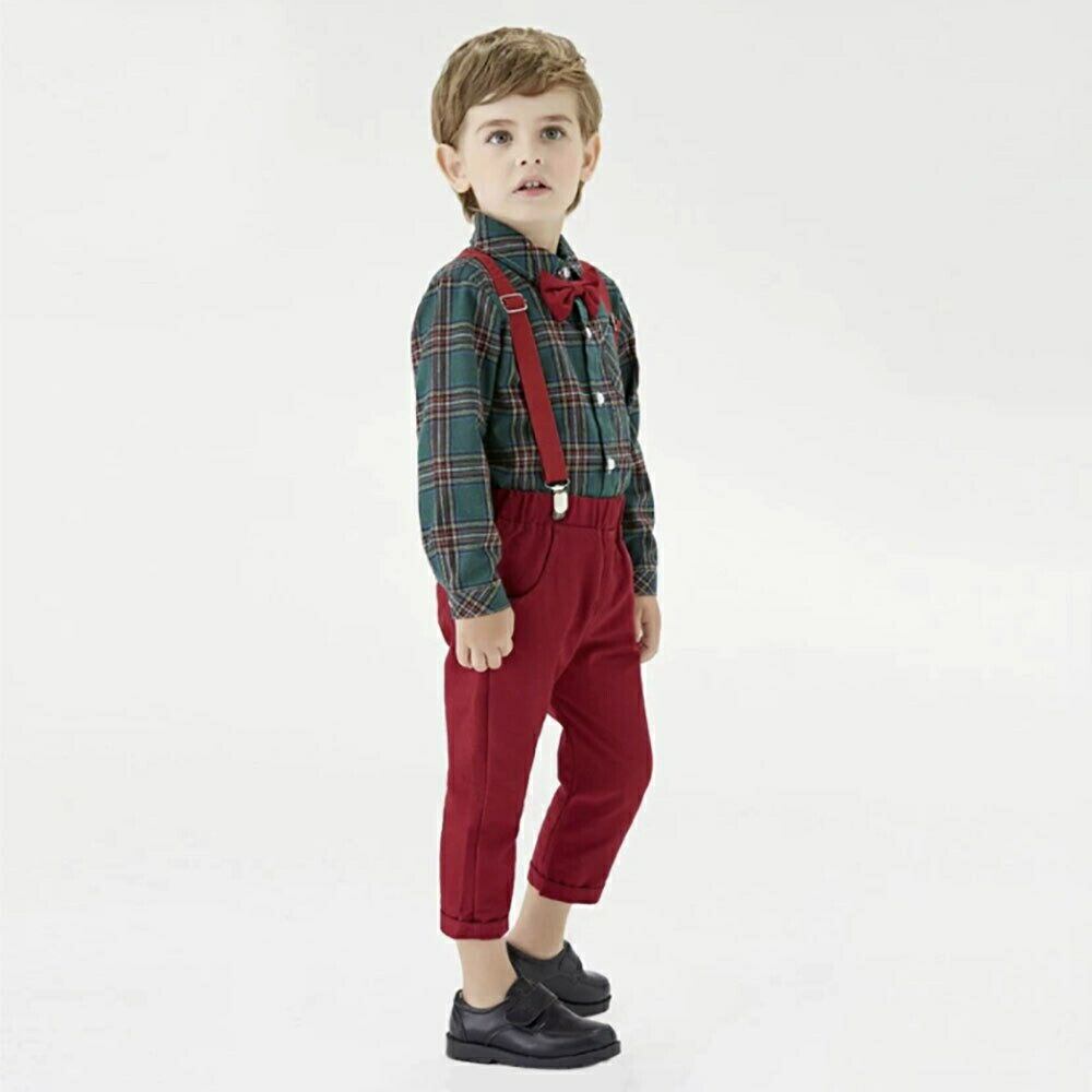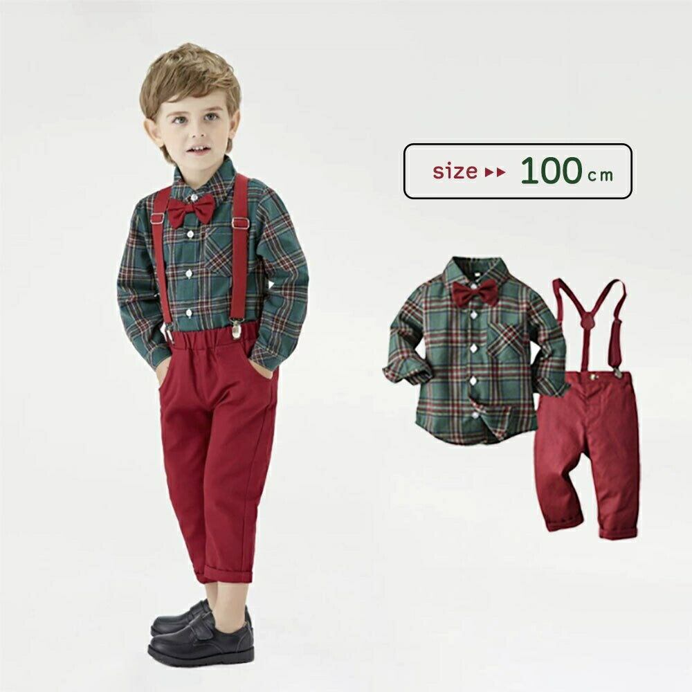 クリスマス 男の子 サスペンダー 上下セット 3歳〜4歳 チェック柄100サイズ 3歳〜4歳トップス着丈約41cm肩幅約26cm身幅約28cm肩から袖まで約33cmパンツウエスト約46cm〜約90cm*ゴムですので伸縮します総丈約50cm 股下約28cm上下セットの重量約200g素材 ポリエステル*蝶ネクタイの取り外しはできません*サスペンダー付きですクリスマスのパーティーをイメージしたチェック柄サスペンダー蝶ネクタイシャツの上下セットです。