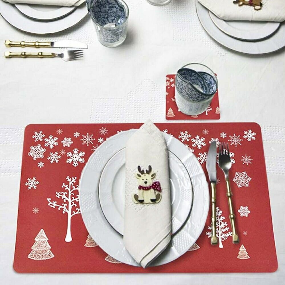何度でも使用可能なので、保管してご使用ください赤いクリスマスカラーの上品な雰囲気を感じさせてくれるのが魅力のシンプルで美しいランチョンマットで、トーストとジャムやバター、ティーカップとティーポットの朝食セットを乗せたり、チェストの上に置いて花瓶やフォトフレーム、キャンドルを並べるディスプレイコーナーにも!