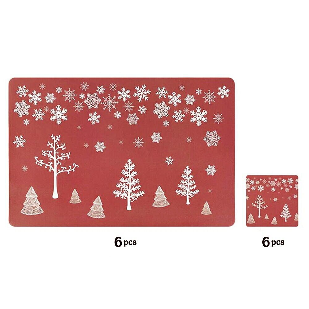 クリスマス 赤 ランチョンマット 6枚セット コースター6枚付きサイズ横約43cm×縦約28cm素材 プラスチックセット内容ランチョンマット 6枚コースター 6枚クリスマスツリー、雪の結晶がプリントしてあるレッドカラーのランチョンマットですコースター付きですクリスマスにきらめきを添えてくれるお食事用のランチョンマットです。