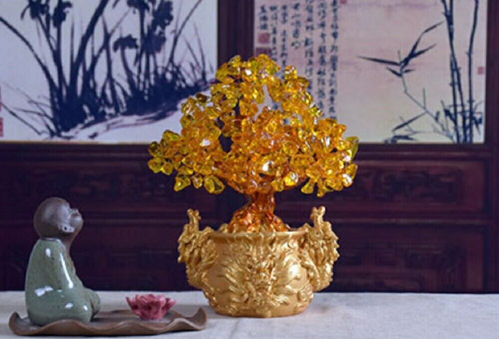 黄色の招財樹は特に金運に効果があり、自信と希望を与えてくれるエネルギーを持つこの黄色の石は『黄水晶(シトリン)』と言います。