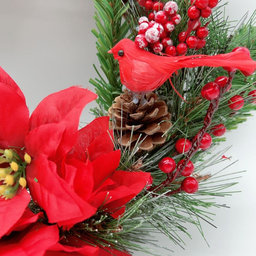 クリスマスリース 50cm×50cm 赤い実 松ぼっくり Xmas リース 造花 アートフラワークリスマスリースを玄関ドアに飾るお家が増えていますね。