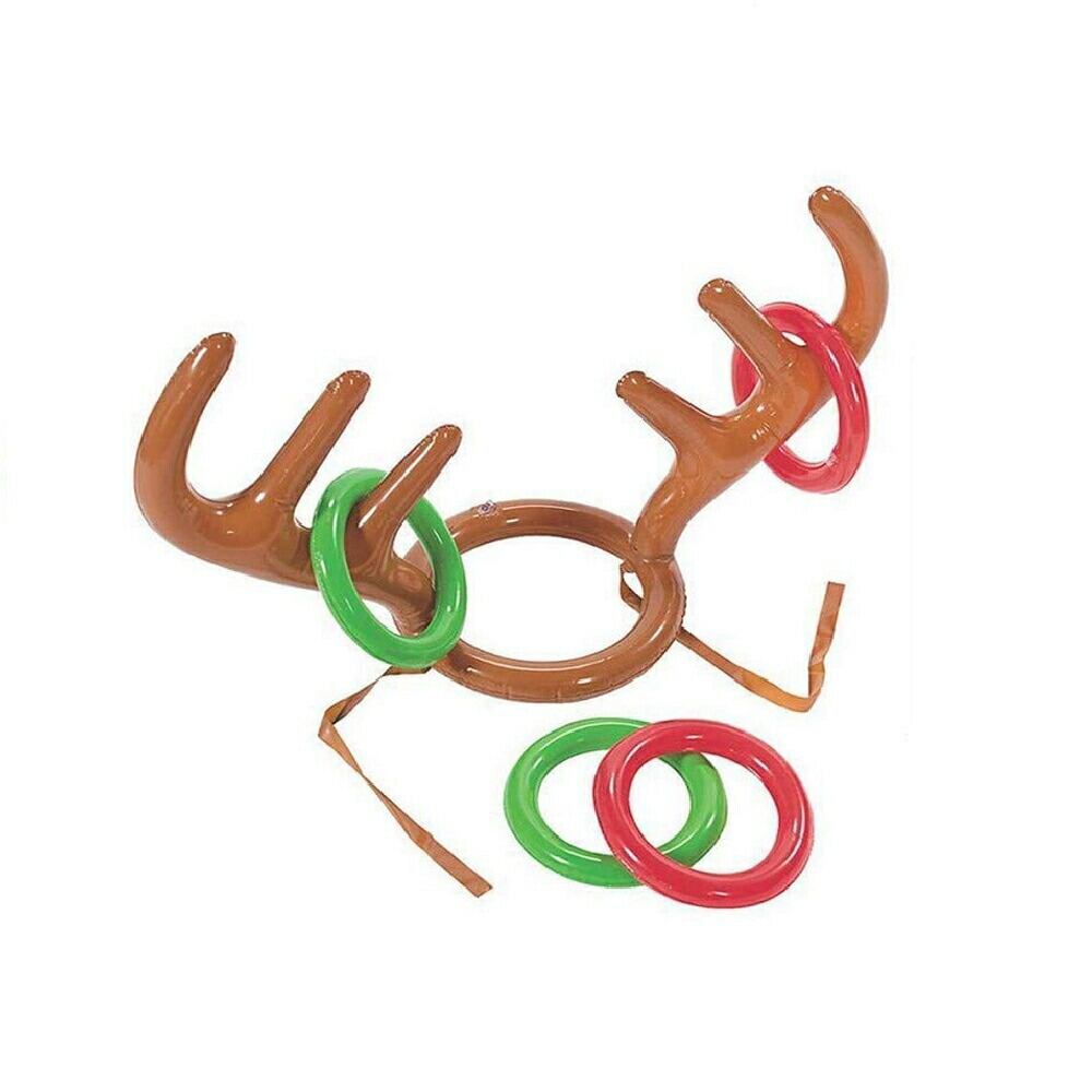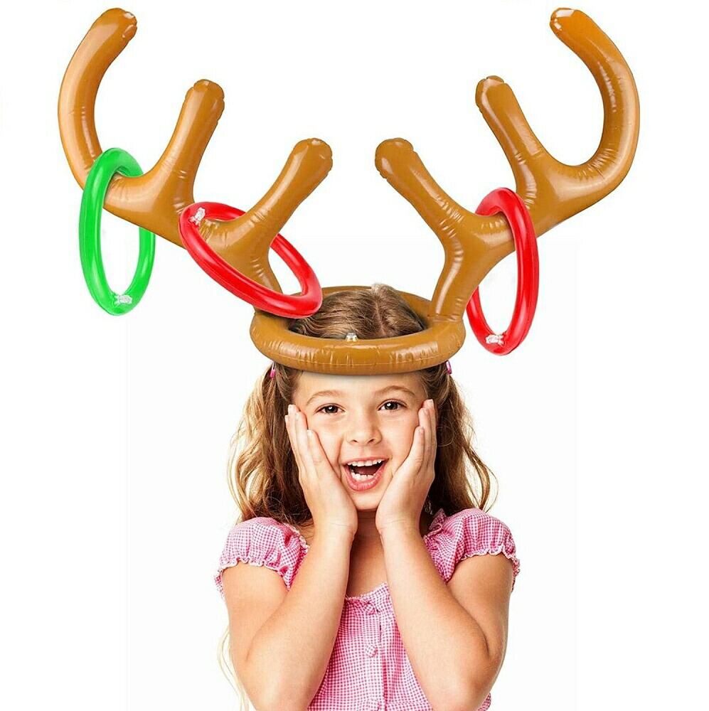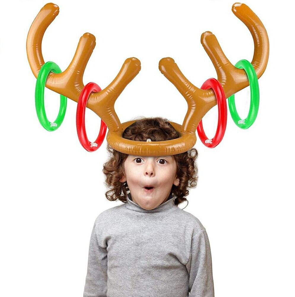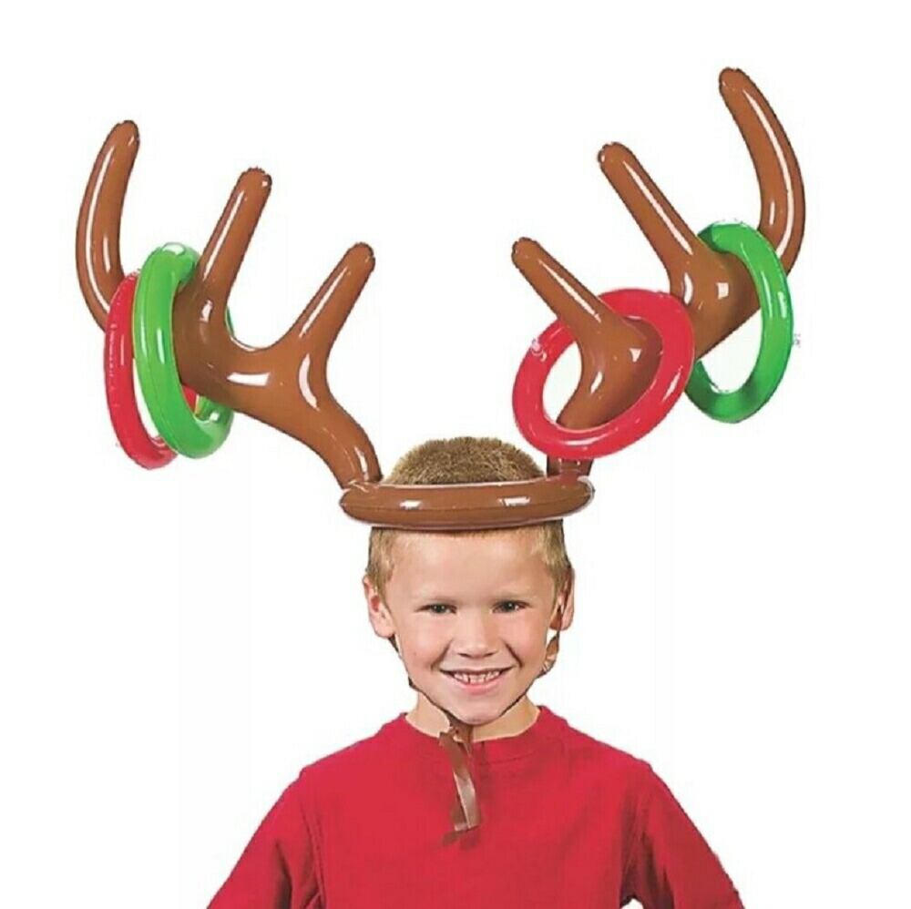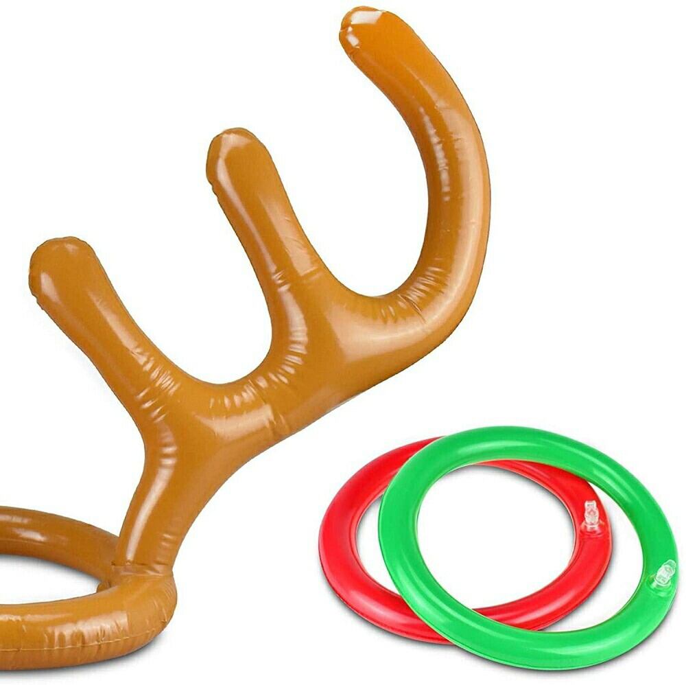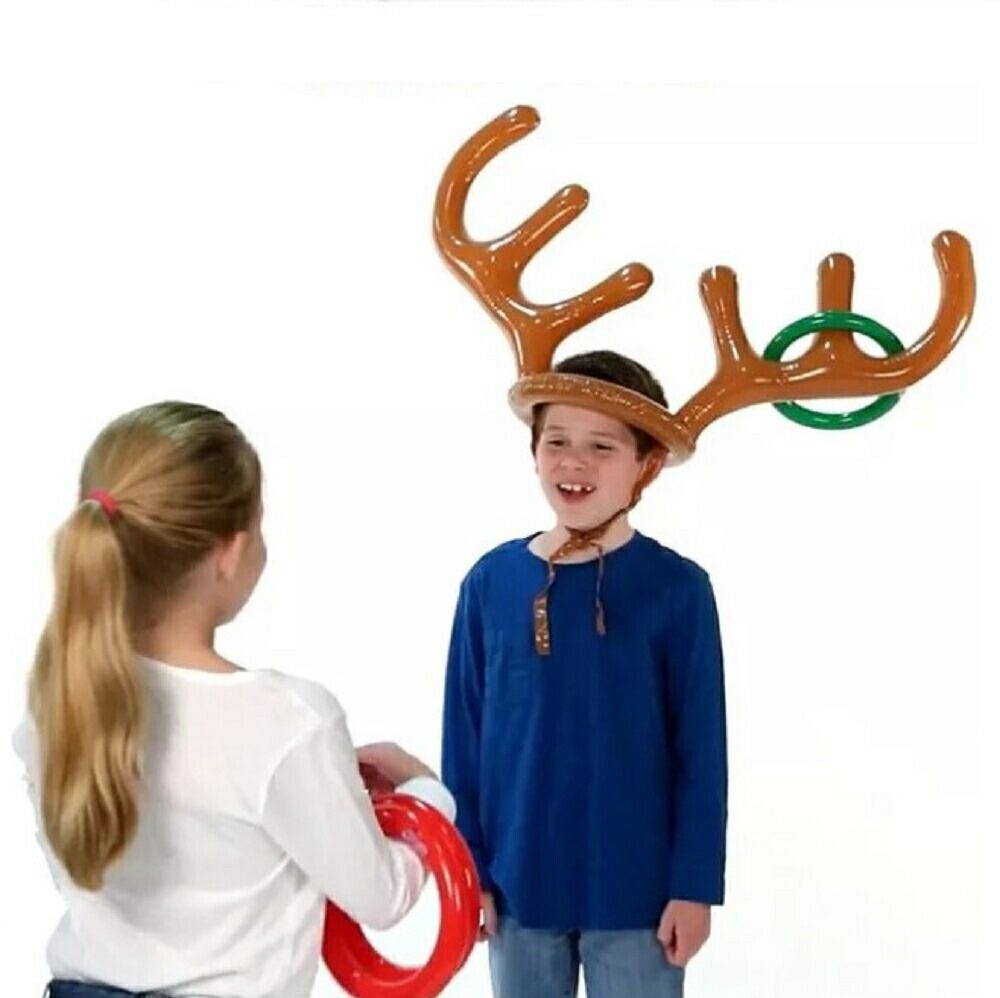 輪投げ トナカイ パーティーゲーム 宴会ゲーム パーティーグッズ 宴会グッズ テーブルゲーム ボードゲーム 空気で膨らませるトナカイの角に、セットのリングを投げ入れるゲームですトナカイの角帽子は頭に乗せてあご紐を結んで使う事ができます膨らませるタイプなので軽く、大人の方はもちろんお子様でも頭に乗せて楽しめますまた、持ち運びにも便利です遊び方のルールは特にありませんが、一人がトナカイの角役になり、みんなで角に輪を投げ入れるゲームが定番です角役も輪を入れる役もみんなで楽しめるゲームになってますファミリーや友達同士、宴会のゲームやコスプレにもオススメです