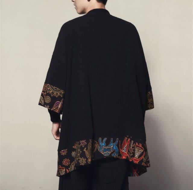 民族感もありファッションとして独特のスタイルとなります♪ちょっと大きめなのでショートパンツ等と合わせて使用可能長さ前約103後約70肩約69バスト約130袖丈約23素人採寸ですのでご了承下さいお祭りやイベントで大活躍のアイテムとなります縁起が良いとされる刺繍がモチーフの法被(はっぴ)です。