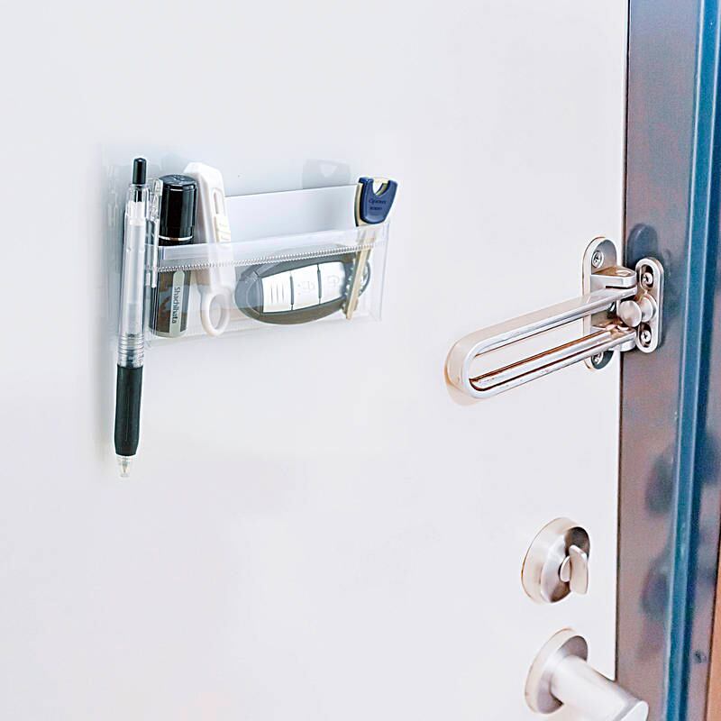 冷蔵庫や洗濯機などマグネットが貼れる場所で小物を整理するのに便利なポケット付マグネットシートです。