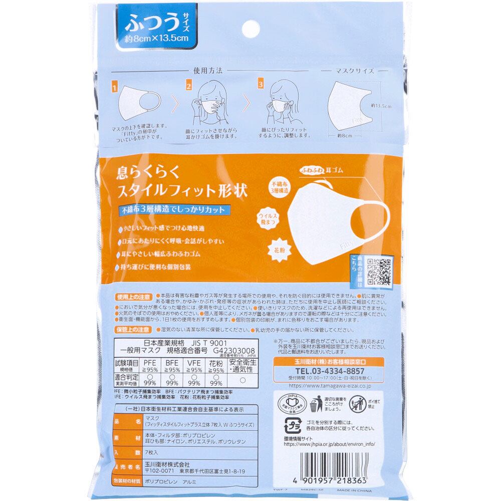 フィッティ スタイルフィットプラス 立体マスク ふつうサイズ ホワイト 7枚入【pto】