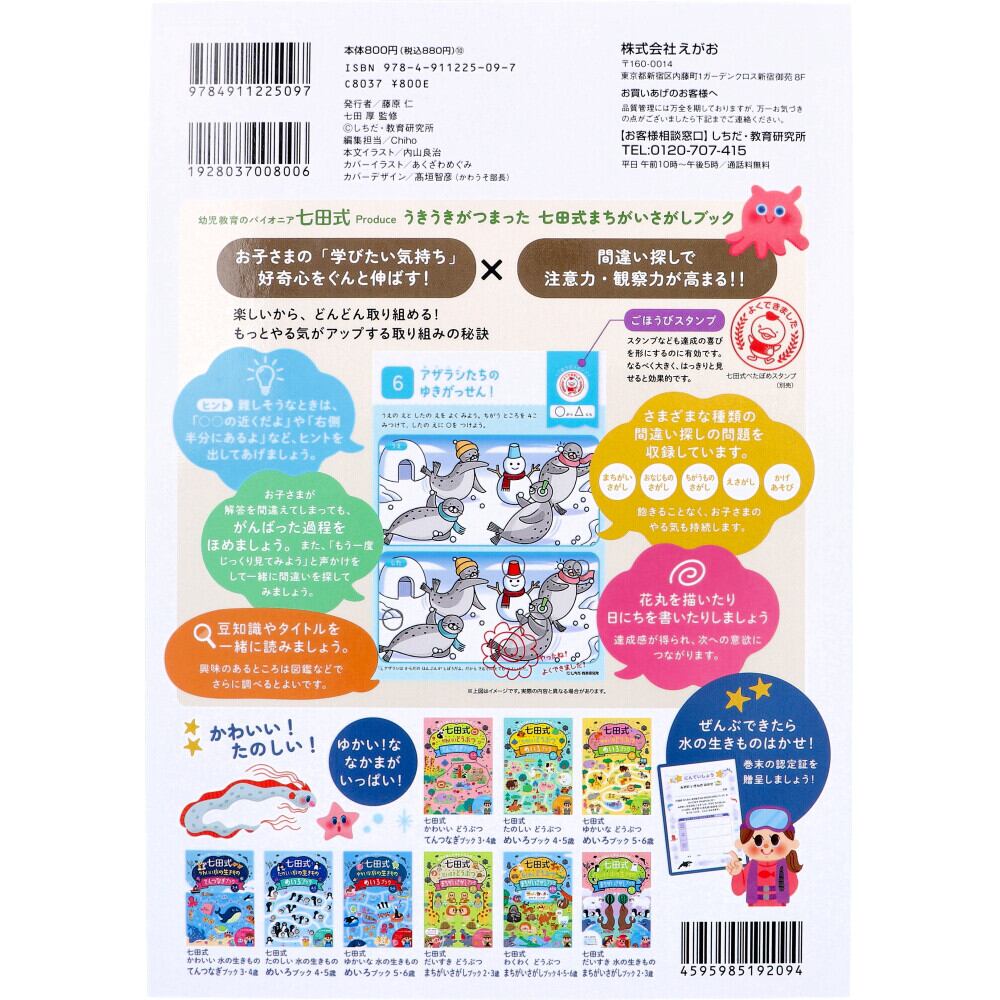 幼児教育のパイオニア 七田式Produce。うきうきがつまった七田式まちがいさがしブック。