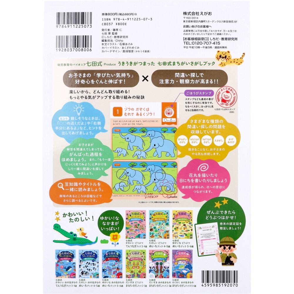 七田式 わくわく どうぶつ まちがいさがしブック 4・5・6さい【pto】