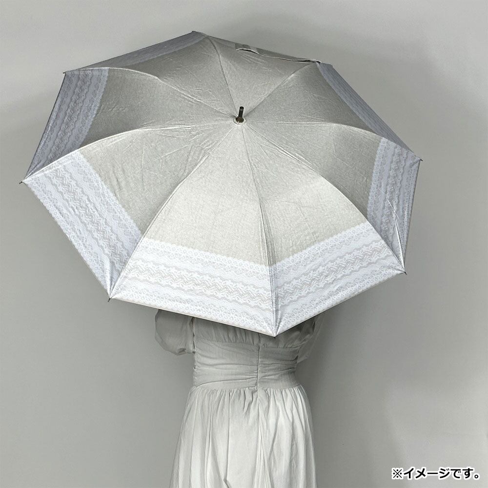 晴雨兼用ショートワイド傘 リネン風無地×リバーレースプリント ベージュ×オフホワイト【pto】