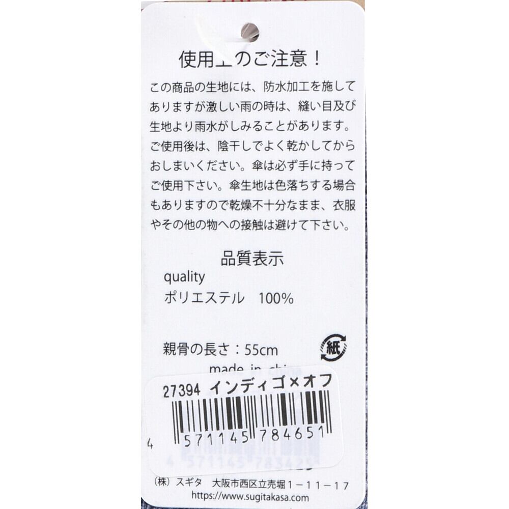 晴雨兼用ショートワイド傘 裏黒コーティング ダンガリー風切継プリント インディゴ×オフ【pto】