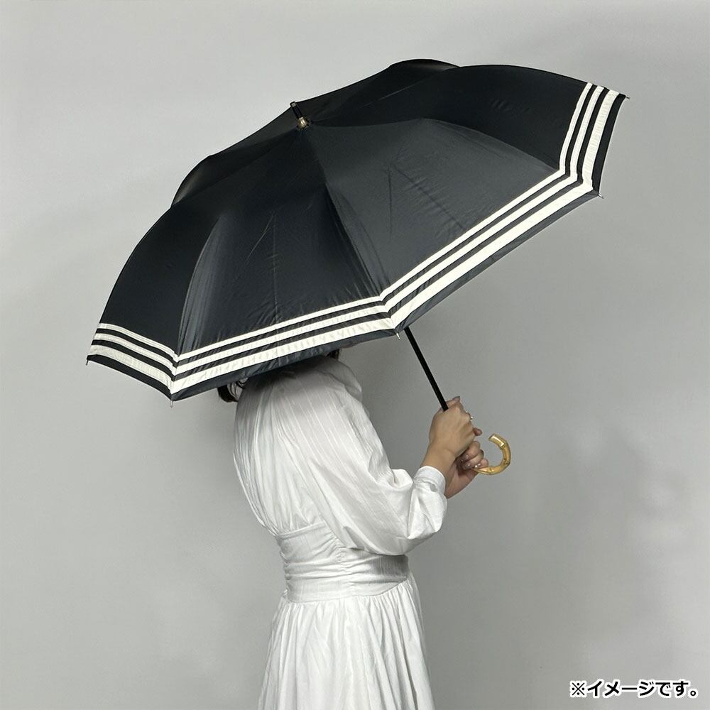 晴雨兼用ショートワイド傘 竹手元 裏黒コーティング マリンボーダー ブラック【pto】