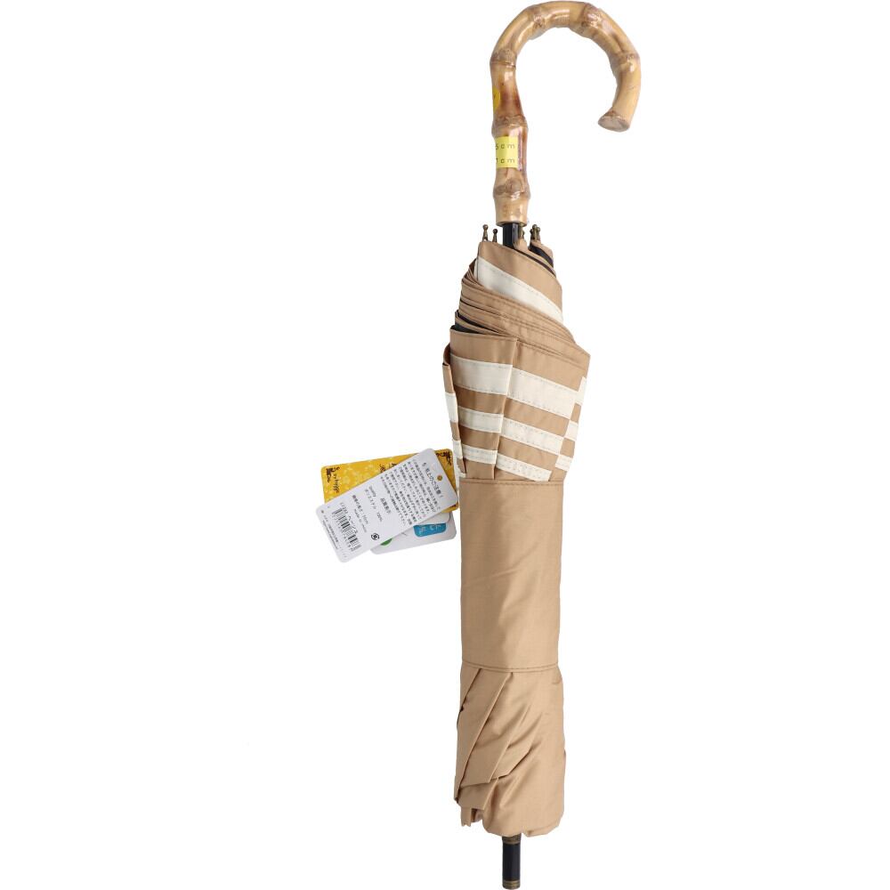 晴雨兼用ショートワイド傘 竹手元 裏黒コーティング マリンボーダー ベージュ【pto】