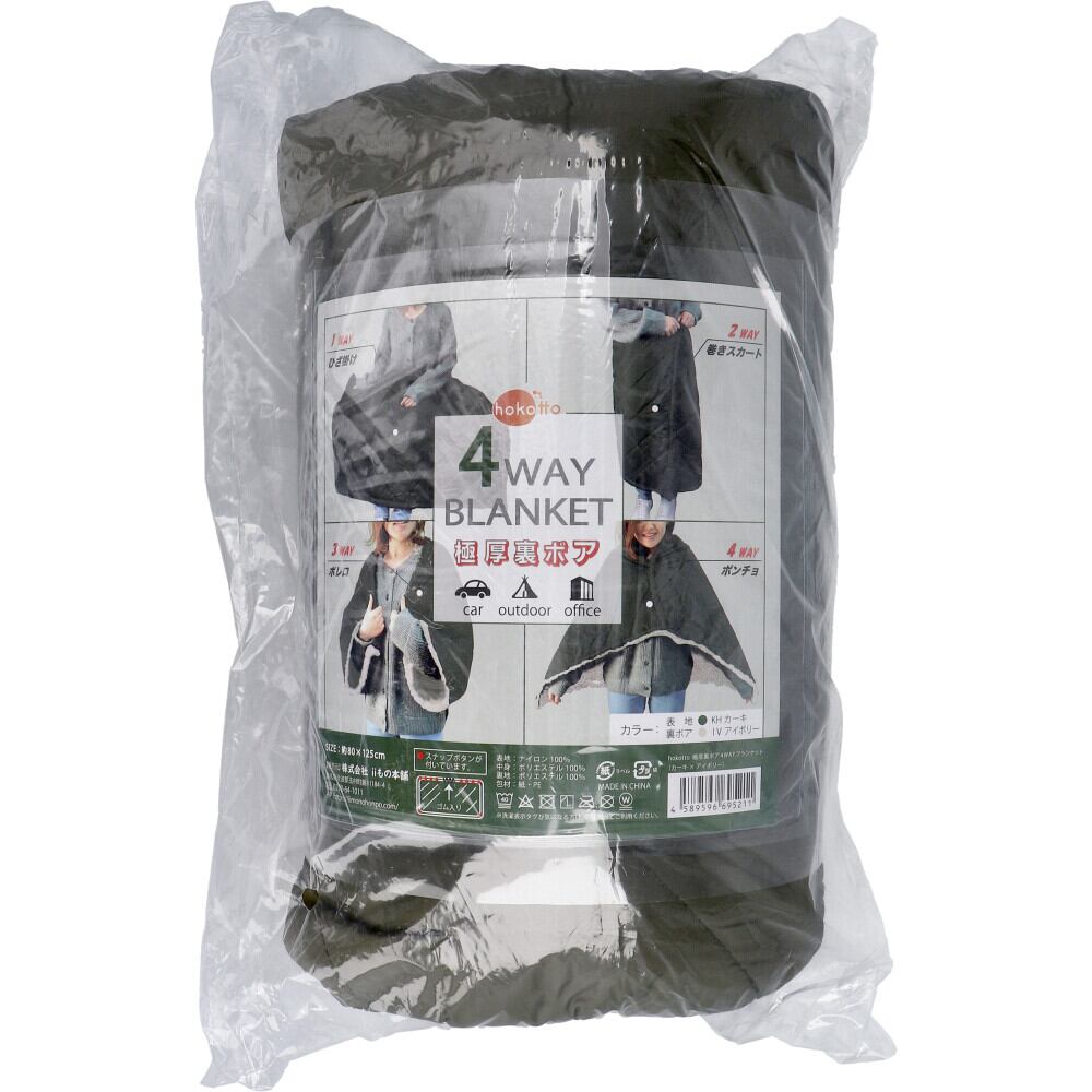 hokotto 極厚裏ボア 4WAYブランケット 80×125cm カーキ×アイボリー【pto】