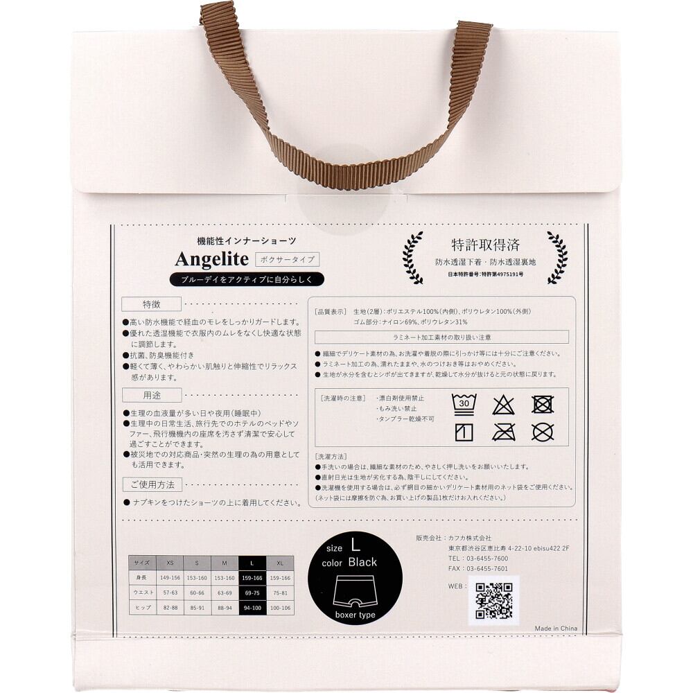 Angelite(アンジェライト) 機能性インナーショーツ ボクサータイプ ブラック Lサイズ 1枚入【pto】
