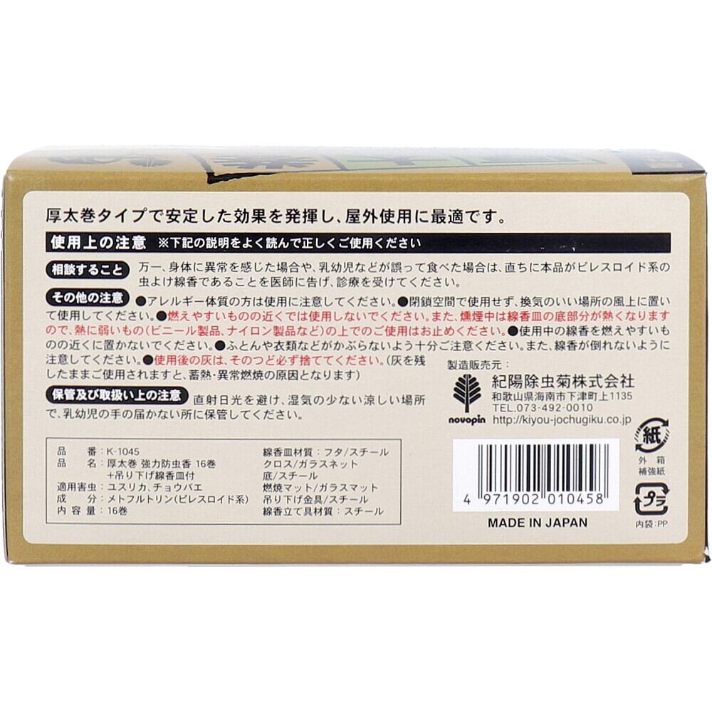 厚太巻 強力防虫香 吊り下げ線香皿付 16巻入【pto】