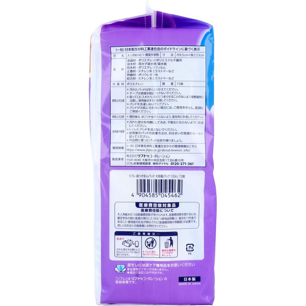 リフレ 超うす安心パッド 多い時も安心用 大容量パック 120cc 72枚入【pto】
