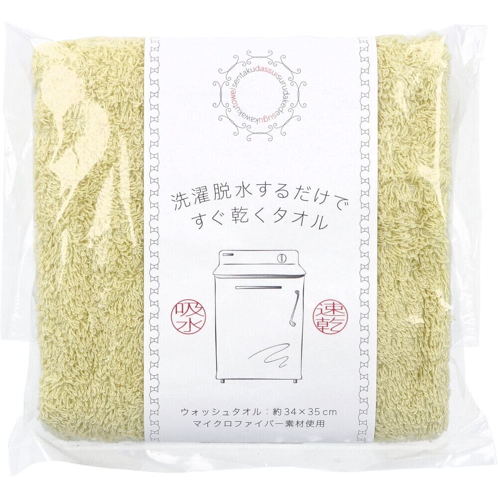 洗濯脱水するだけですぐ乾くタオル ウォッシュタオル 約34×35cm イエロー HB-3501 1枚入【pto】