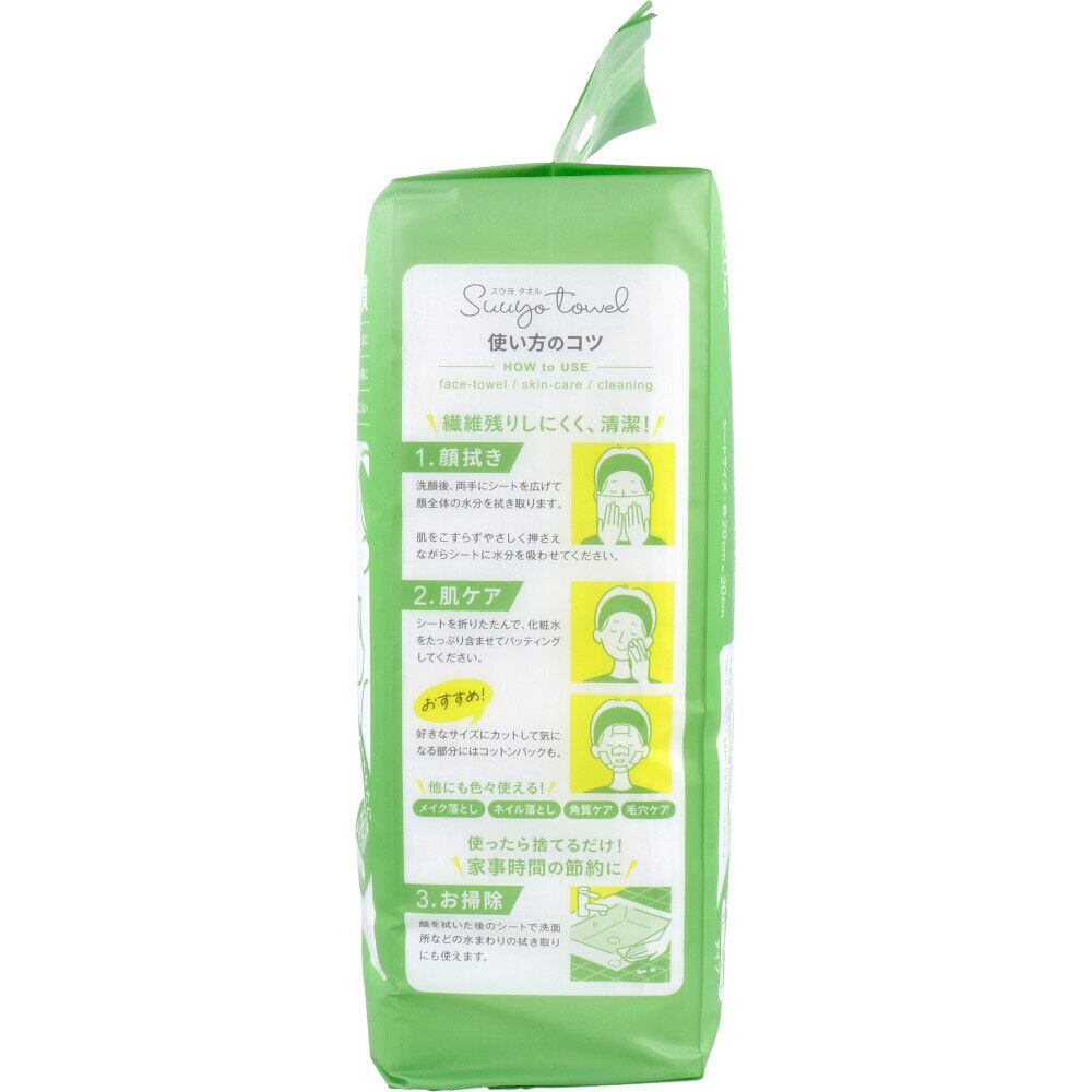 ・顔拭き:洗顔後、両手にシートを広げて顔全体の水分を拭き取ります。肌をこすらずやさしく押さえながらシートに水分を吸わせてください。・肌ケア:シートを折りたたんで、化粧水をたっぷり含ませてパッティングしてください。おすすめ!好きなサイズにカットして気になる部分にはコットンパックも。他にも色々使える!メイク落とし、ネイル落とし、角質ケア、毛穴ケア。・お掃除:顔を拭いた後のシートで洗面所などの水まわりの拭き取りにも使えます。