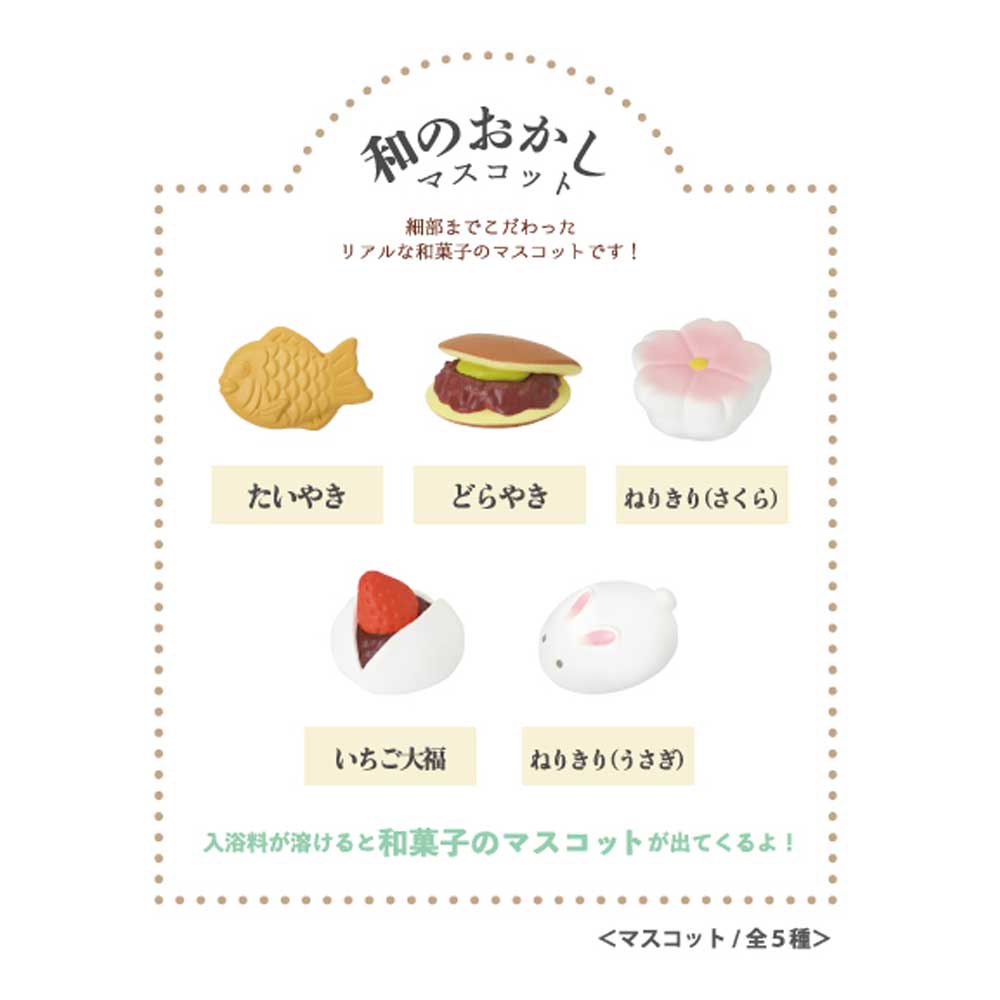 ●マスコットは全部で5種類!(いずれか1つが入っています。選ぶことはできません。)・いちご大福・どらやき・たいやき・ねりきり(さくら)・ねりきり(うさぎ)