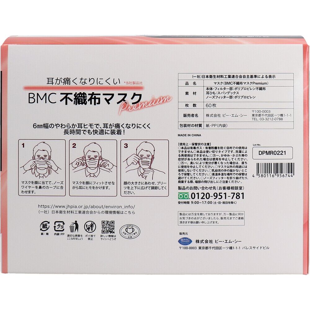 BMC 不織布マスク プレミアム 1日使いきりタイプ 小さめサイズ 60枚入【pto】