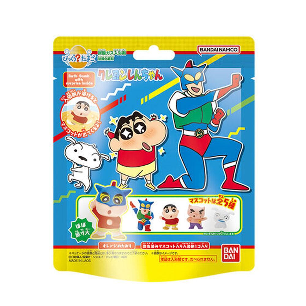 クレヨンしんちゃんのびっくらたまごシリーズ!入浴剤が溶けると、中からクレヨンしんちゃんのマスコットが1つ出てきます。