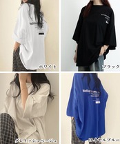 レディース ビッグTシャツ プリントTシャツ カットソーユニセックス 夏t 韓国風チュニックロンT ゆったり黒白tシャツ