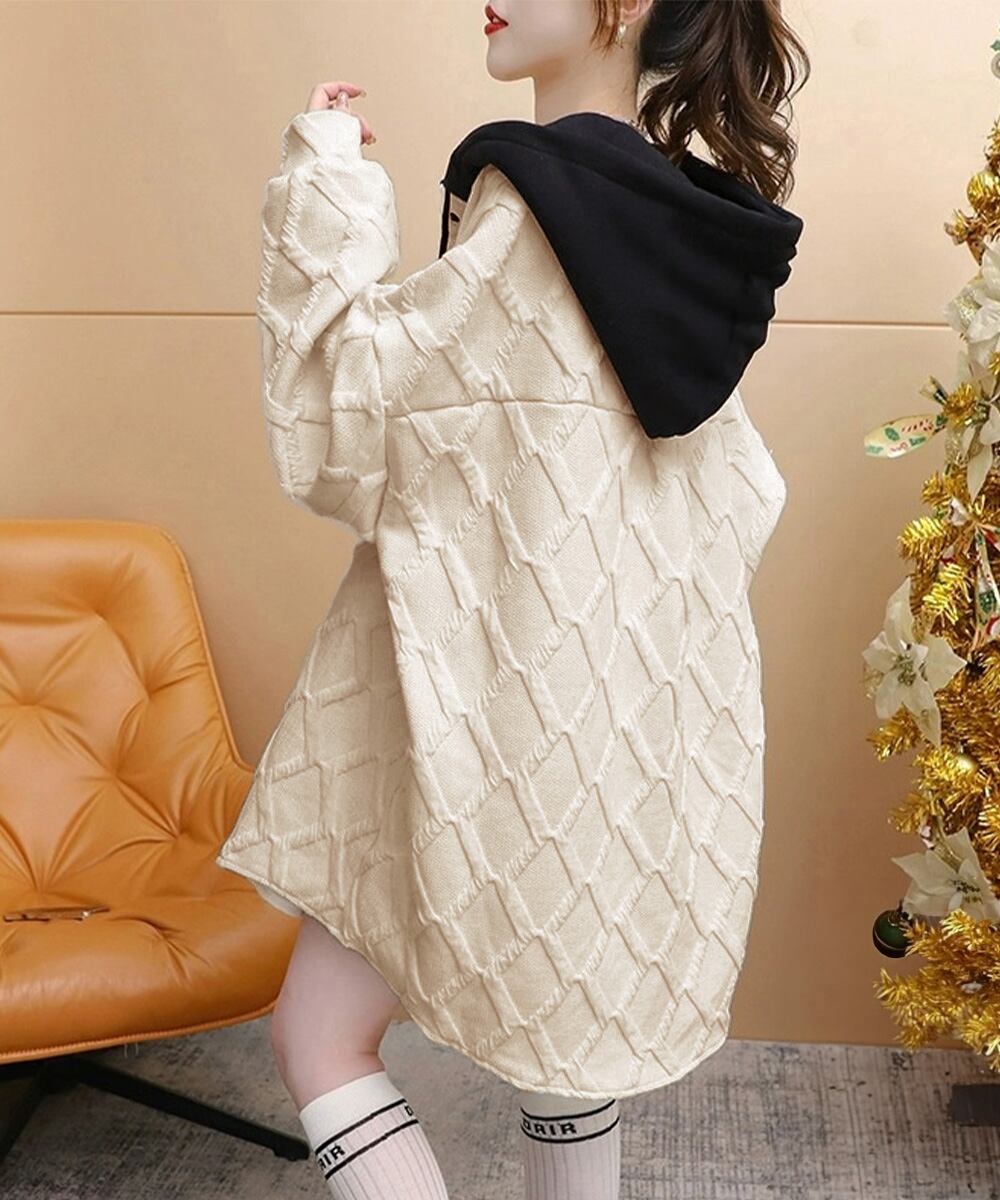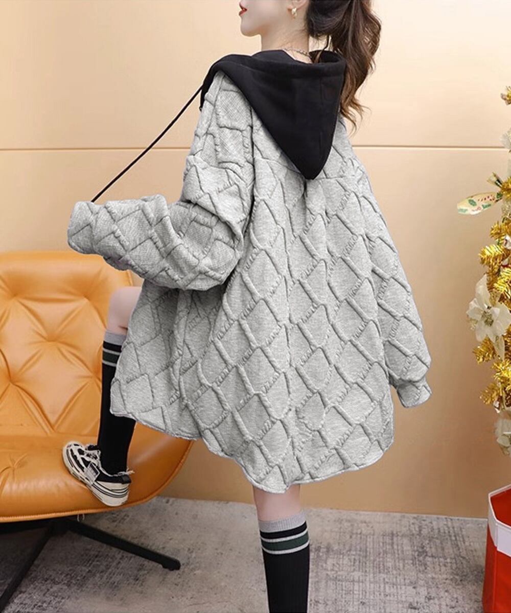 フード付きトレーナー長袖 ゆったり春秋服 体型カバー羽織り ジャカードジャケット ロング スウェットカーディガン お洒落