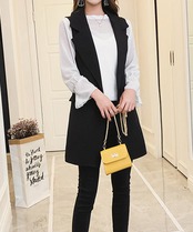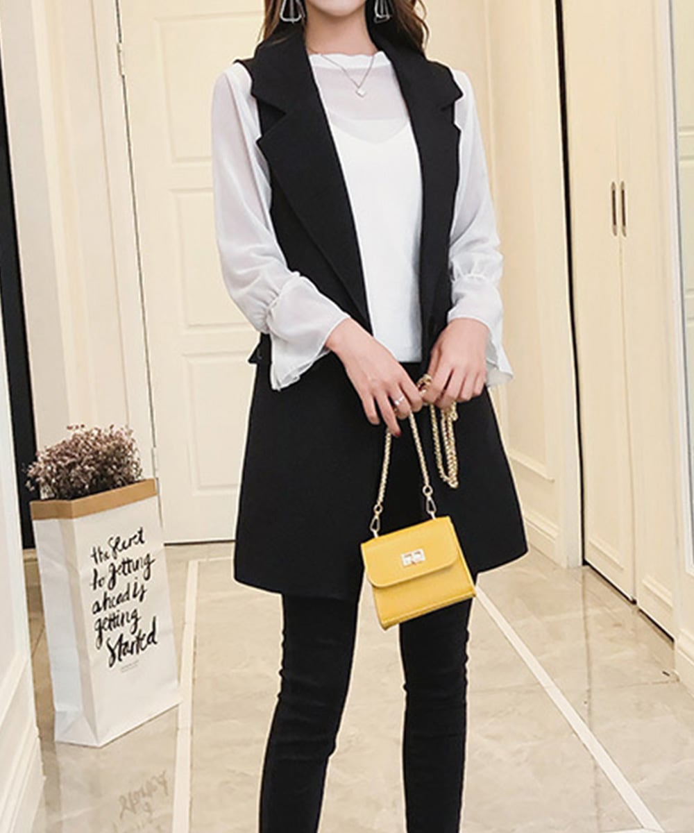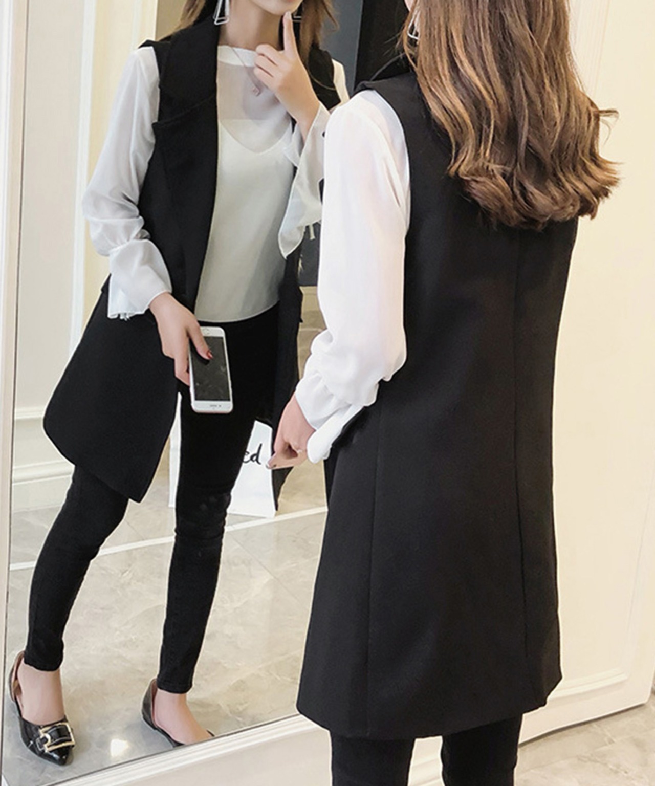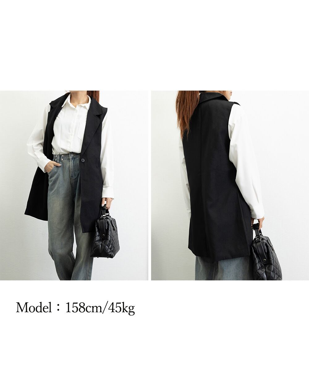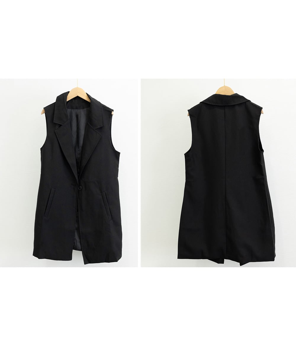 ベスト カッコいい 羽織り 体型カバー ロング丈ベスト 黒