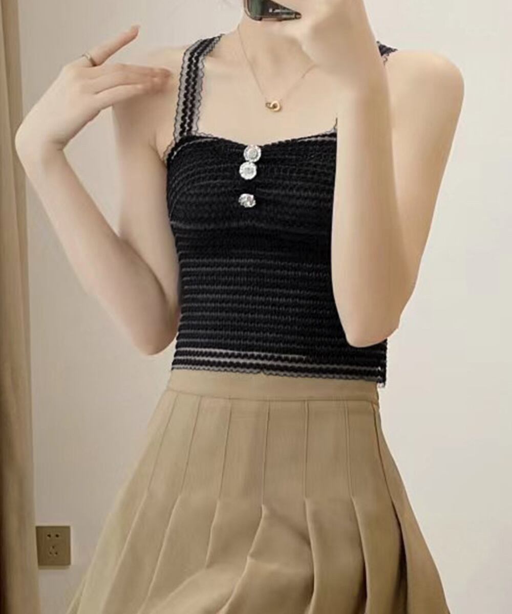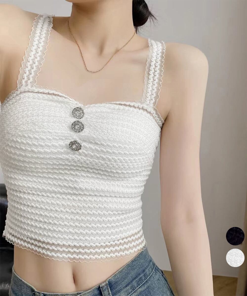 ノンワイヤー セクシー レースブラキャミ ヘソ出し 背中見せインナー 胸元ボタン シアーキャミソール ショート丈 着やせ