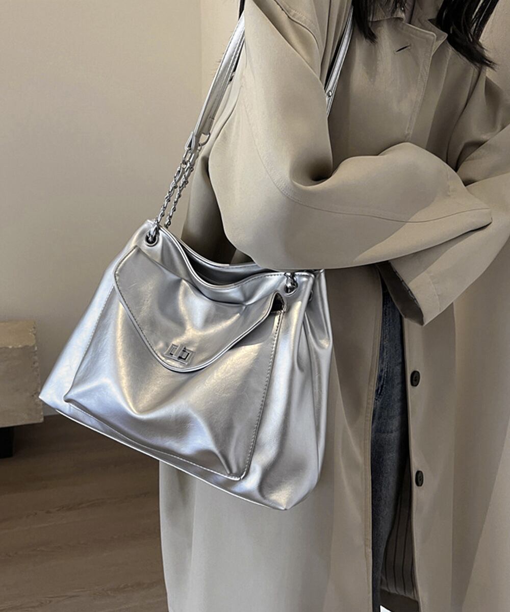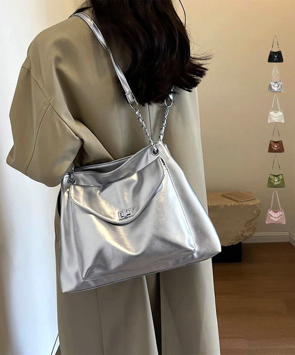 韓国風 おしゃれ PUレザー 通勤通学 大人肩掛け鞄 トレンド シルバーバッグ 大容量 人気注目 メタリックカラーバッグ