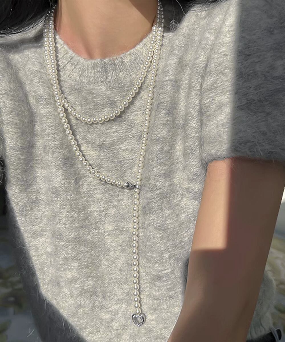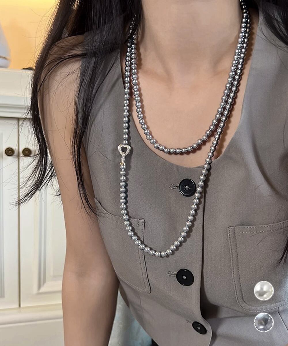 顔周りが気品漂う、プチプラ2wayパールロングネックレス